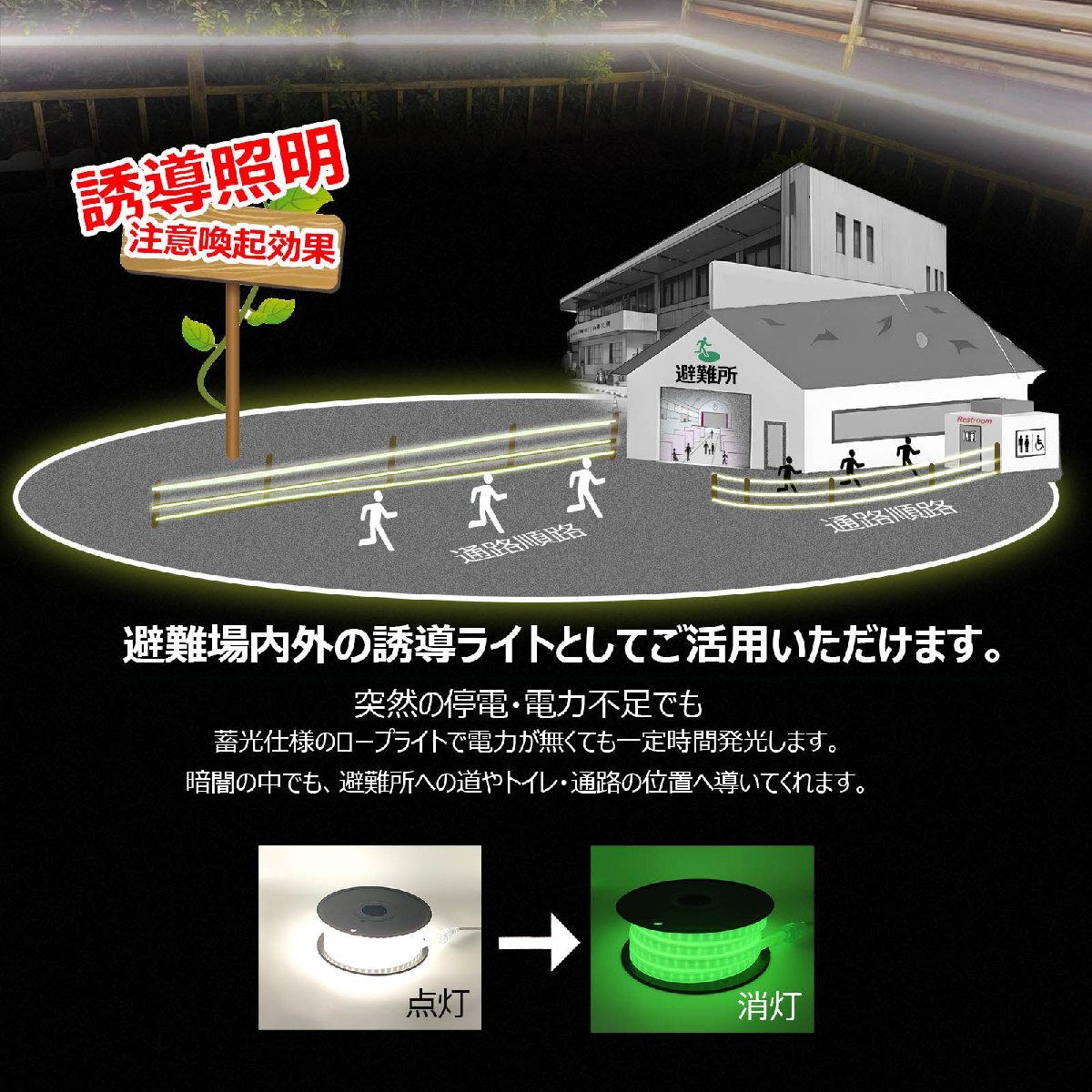 ![]() ![]() ![]() ![]() ![]() ![]() ★オススメポイント★ 両面発光 約28000lm高輝度LEDライン!両面発光で広範囲を明るく照射します! IP65防水等級 連結部には防水輪パッキン・防水キャップ付き! 屋外使用でもご使用いただけます。 複数連結可能 最大2本(40m)まで連結可! より広く、より長い距離を照射!誘導照明としても活躍します。 リールドラム付き 収納・保管・持ち運びにも便利なリールドラムを付属 難燃等級V-0 燃えにくく、消えやすい!UL94規格V-0等級優れた難燃性素材を採用! 蓄光素材採用 消灯・停電後も一定時間蓄光素材が発光し、安全性・利便性が向上!