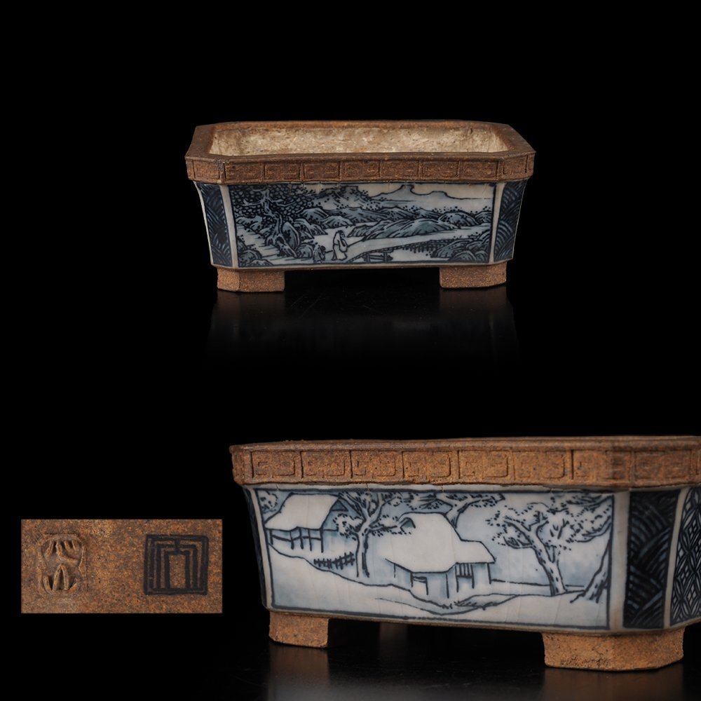 佐野大助・紺野心山、合作盆器。 画像など見て詳しくわかる方入札下さい。 |