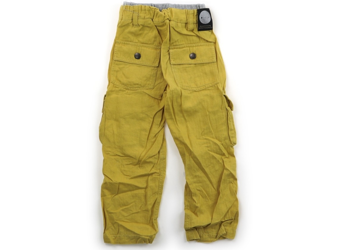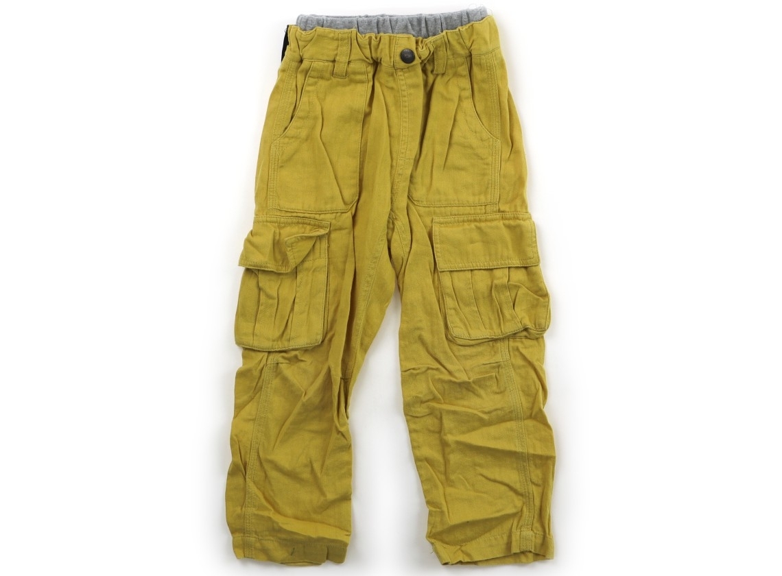 ウエストは総ゴムです。綿100%。全体に毛羽立ちがあります。左膝あたり、薄黒い汚れ跡あり。折りシワがついています。裾、ヨレ感あり。まだお使いいただけそうです。