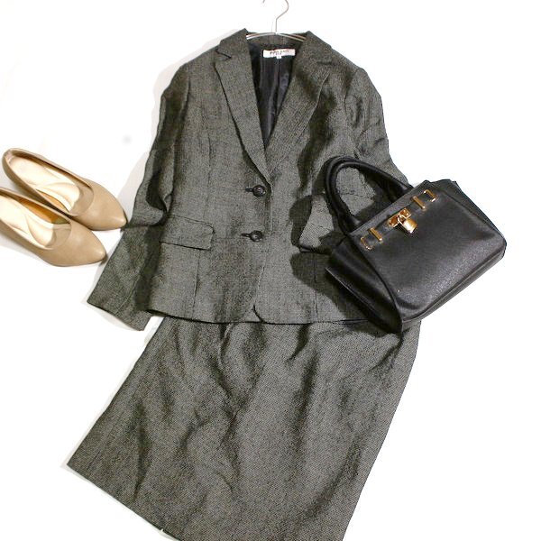 美品 NATURAL BEAUTY BASIC ナチュラルビューティーベーシック ウール100% 綺麗め ライトツイード スーツ M 上下 セットアップ 25B10