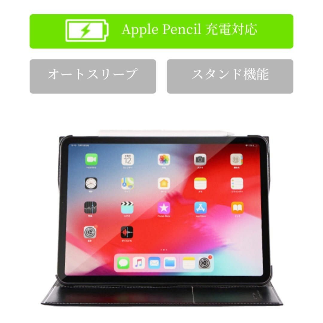 Apple Pencilの充電対応/オートスリープ対応/上質なPUレザー生地を使用/2枚のカード収納ポケット/動画鑑賞・タイピングに最適な2つの角度のスタンド機能