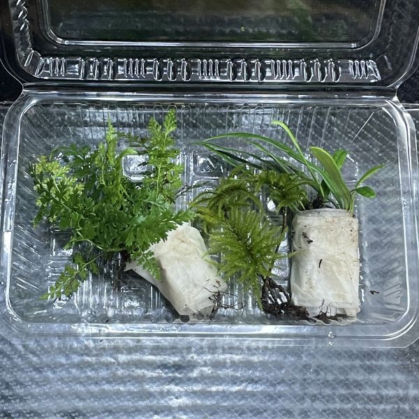 ゆったり!まったり!と綺麗なこけで癒されて見ませんか? 色鮮やかな天然の苔等をパック外寸(18cm×12cm)に詰めしました。 ★苔:ミニシダ コウヤノマンネングサ ノキシノブ 各3株 苔盆栽・苔リウム、テラリウムの装飾にオススメ! 出来るだけ形の良いコロニーを厳選しております。 色も緑鮮やかで、ボリューム満点です。 取り出す際はコロニーを崩さないよう下からすくうようにして慎重に取り扱いお気に入りのケースに入れてください。 環境は日陰〜陰 湿気多 です。 こけ表面が乾いたら霧吹きなどで水を与えてください。 苔は湿らせた状態で発送させていただきますが季節的に乾燥して届く場合もあります。 自然苔のため清掃後も小石や枝葉などが混じっている可能性がありますが、ご了承ください。 第四種郵便発送ですので内部が見える梱包になります。 また追跡や保障はありませんので不安ありましたら別途追加料金にて宅配便などへの変更は可能です。 到着時は半渇き~乾燥状態で葉が縮こまって元気が無いように見えるかもしれませんが霧吹き等で水を与えてください。