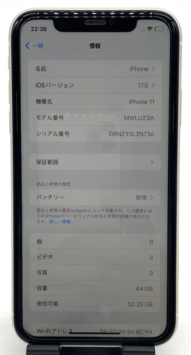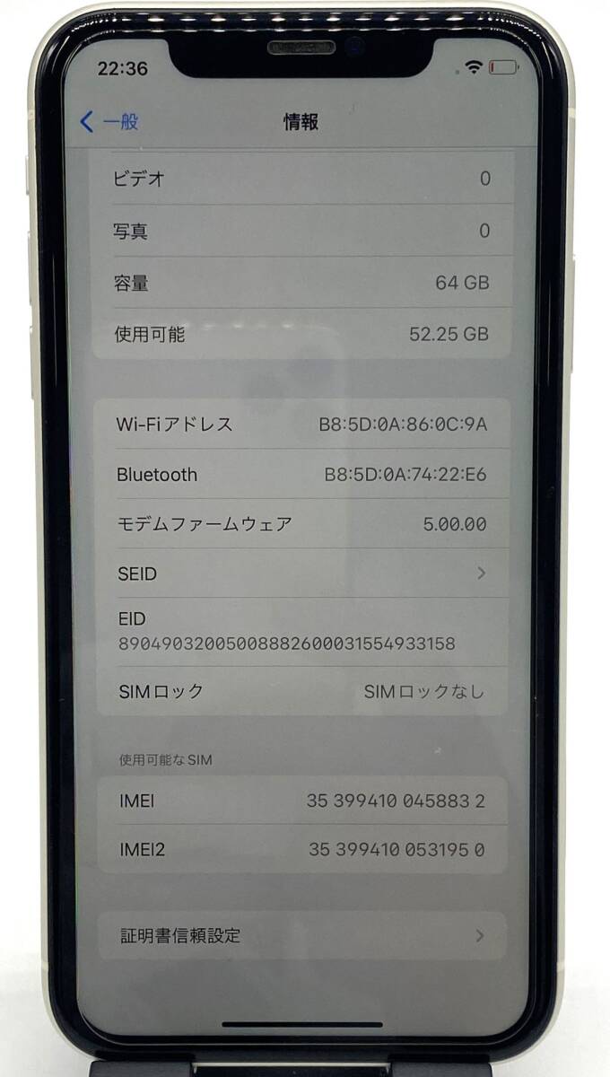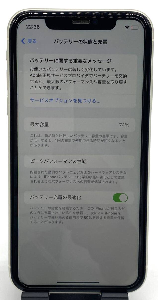 | 【16305Z】中古現状品 Apple iPhone11 64GB ホワイト A2221 MWLU2J/A バッテリ74% SIMフリー スマホ本体 クリックポスト | |