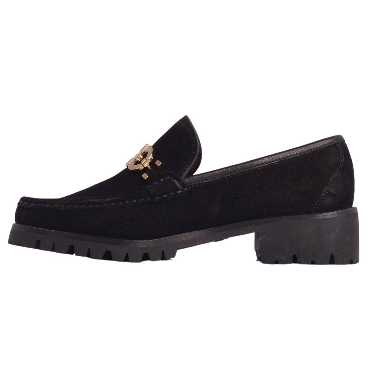 | 美品 サルヴァトーレ フェラガモ Salvatore Ferragamo ローファー モカシン ガンチーニ スウェード レディース 7D 黒 |