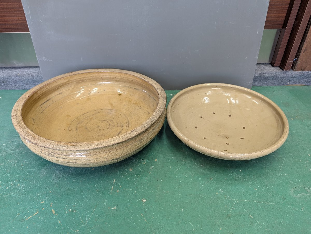 陶器 こね鉢 古美術 大皿 メダカ鉢 鉢 金魚鉢 特大鉢 皿 2枚セット