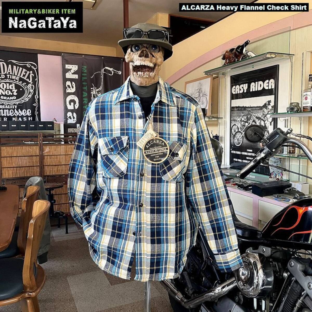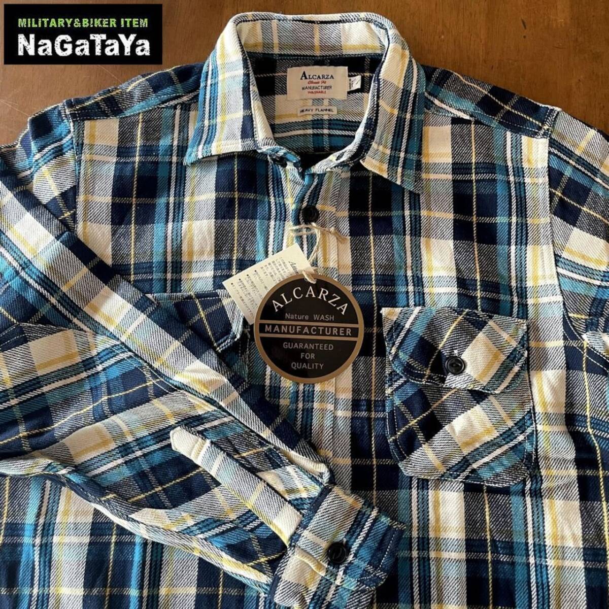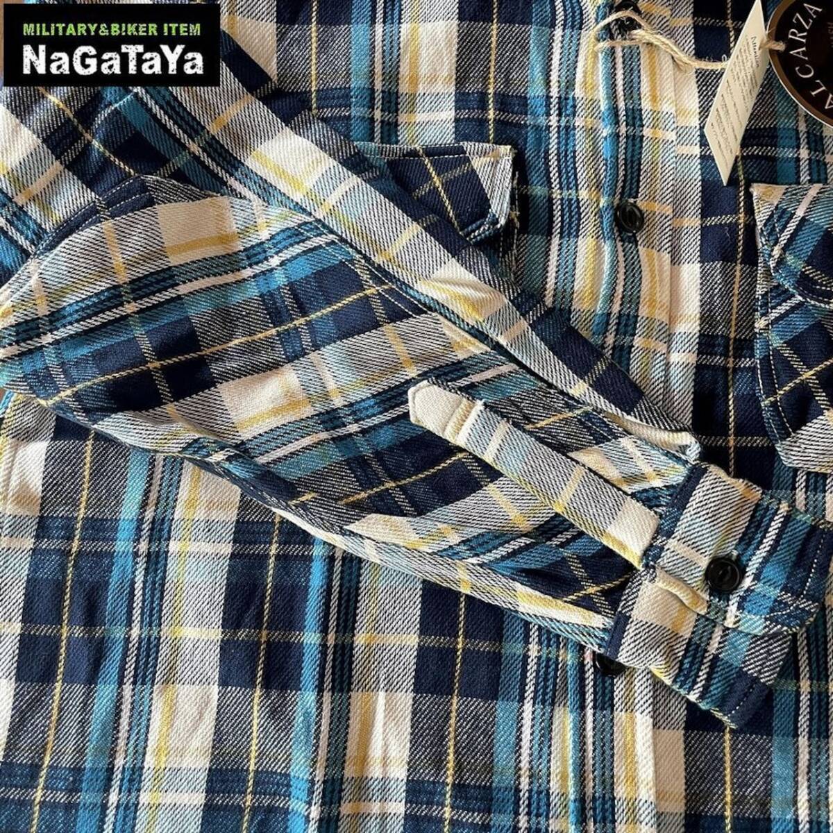 ★ ALCARZA アルカーザ ヘビーネルチェック ワークシャツ タータンチェック柄 スカイブルー 54 アメカジ バイカー ストリート ★