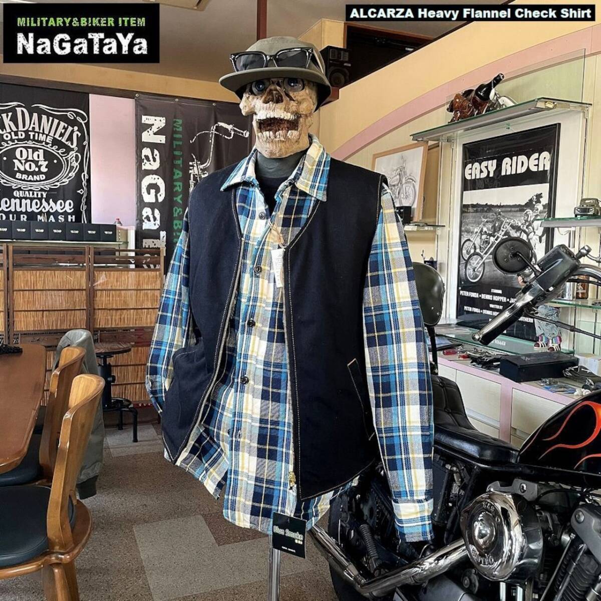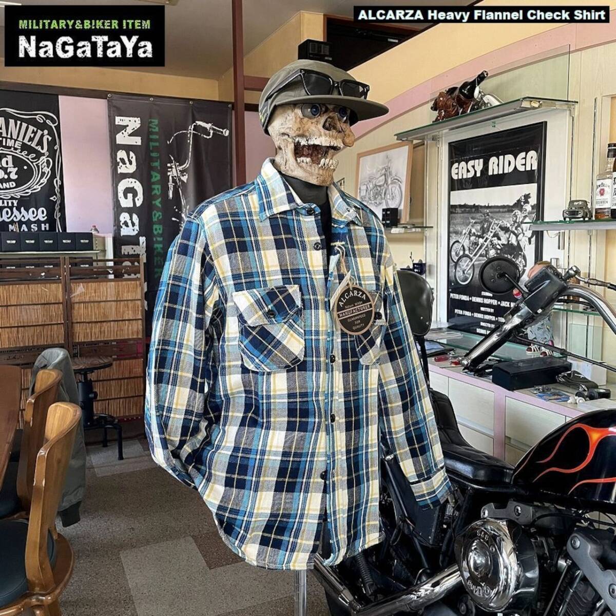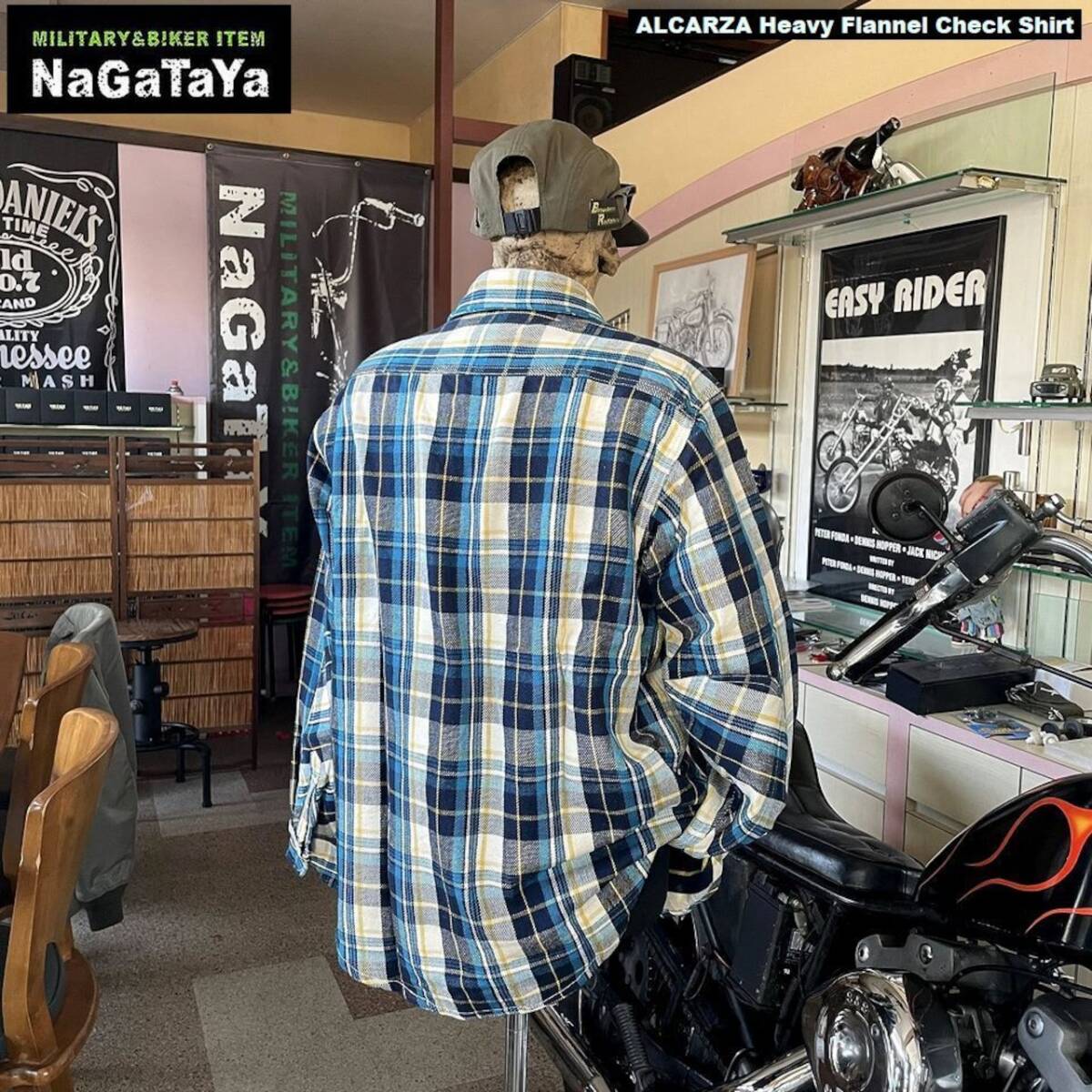 ★ ALCARZA アルカーザ ヘビーネルチェック ワークシャツ タータンチェック柄 スカイブルー 54 アメカジ バイカー ストリート ★