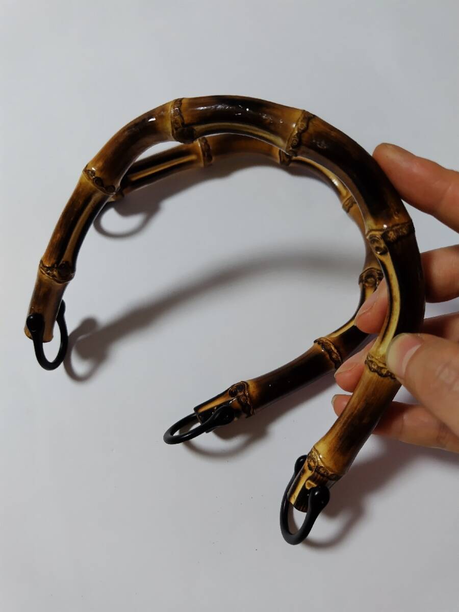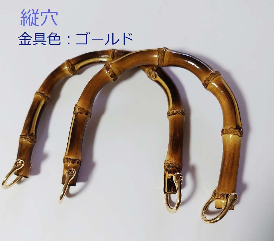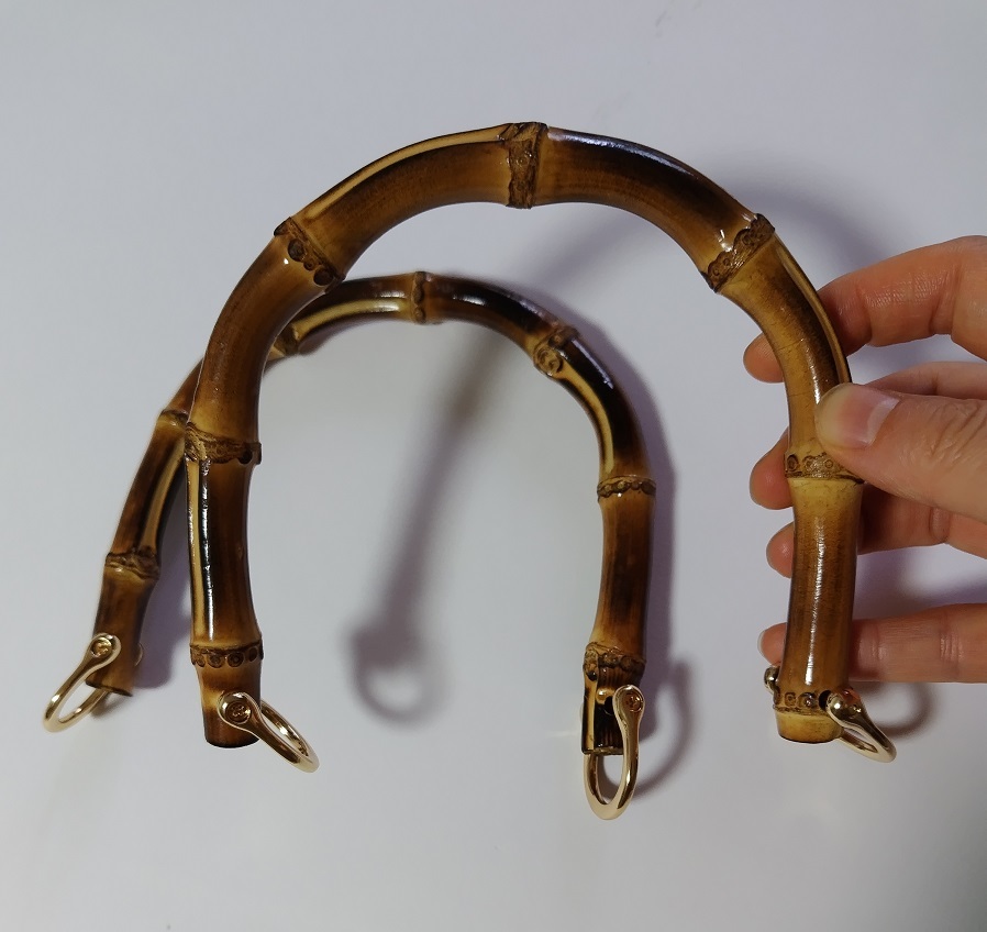 天然竹製 バンブーハンドル 持ち手 2個 1セット U形 バッグ用 天然竹 縦穴 手芸