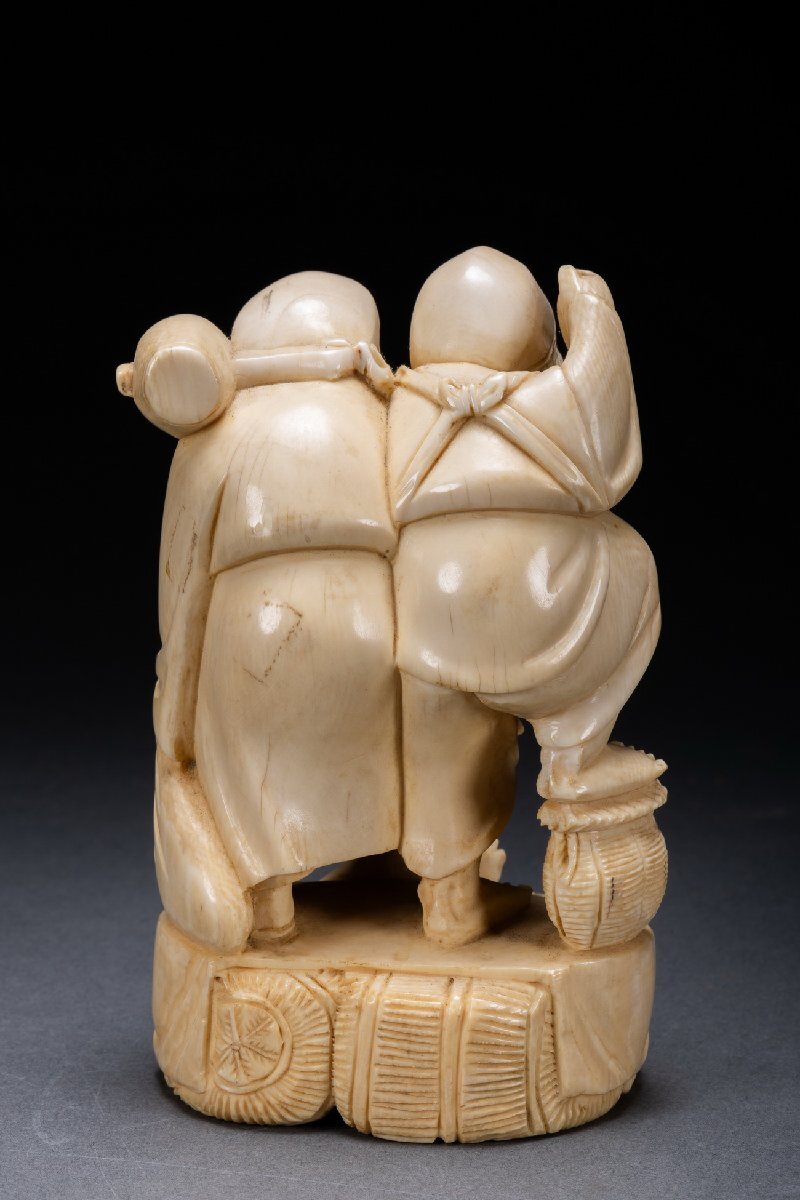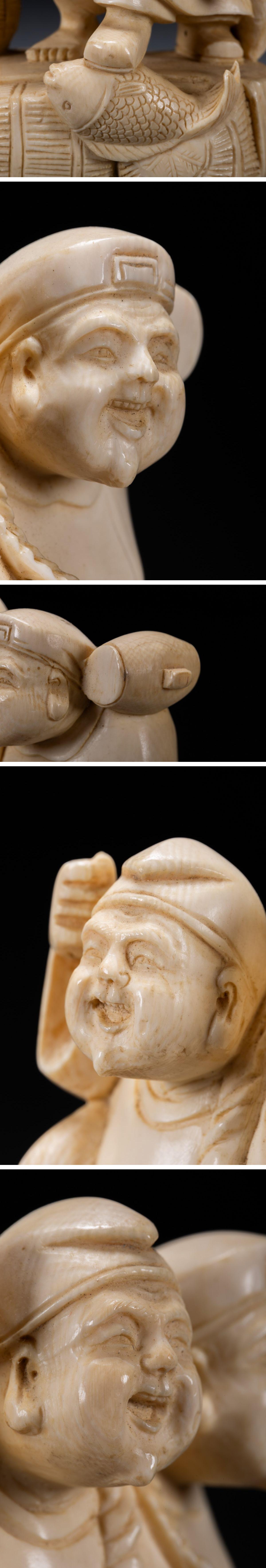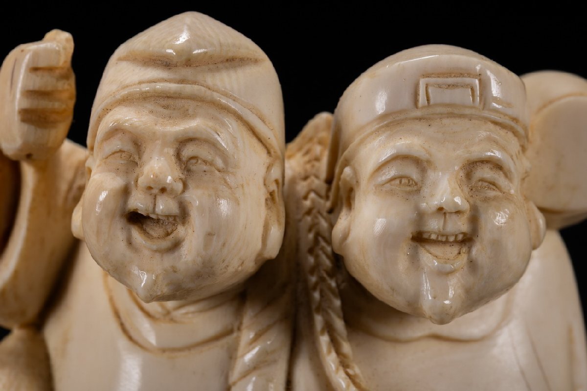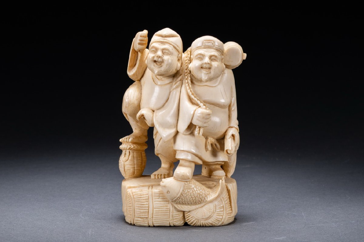 【雲錦】某有名オークション購入 時代物 特殊白材 大黒天・恵比寿造像 古置物 古擺件 古美術 時代コレクションZ-125
