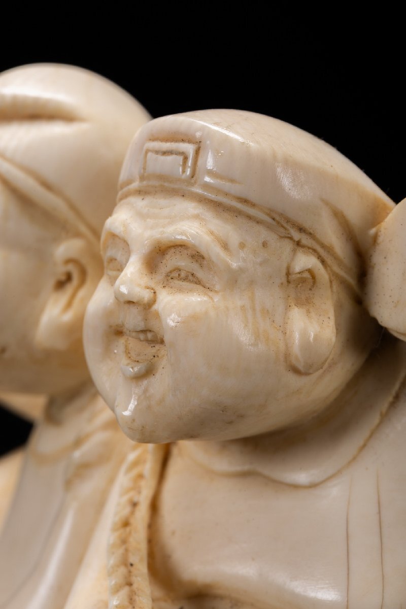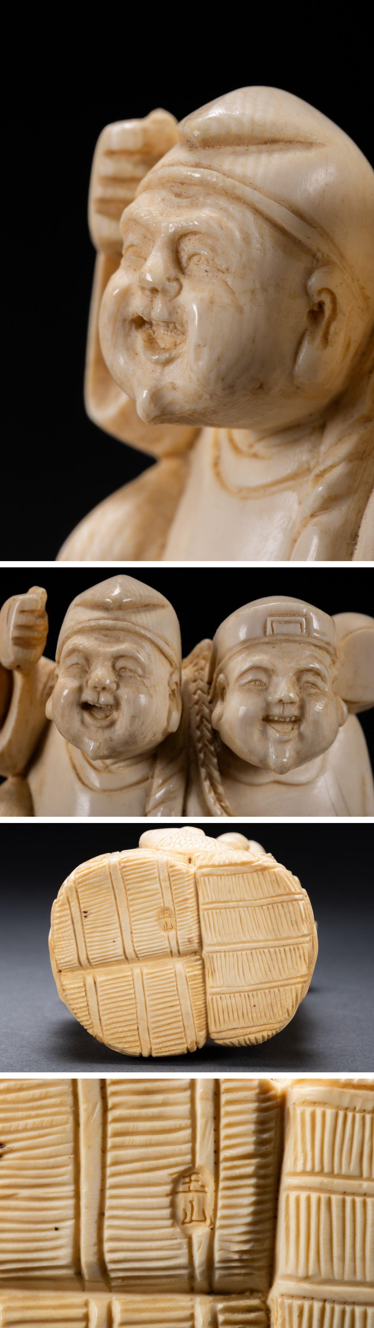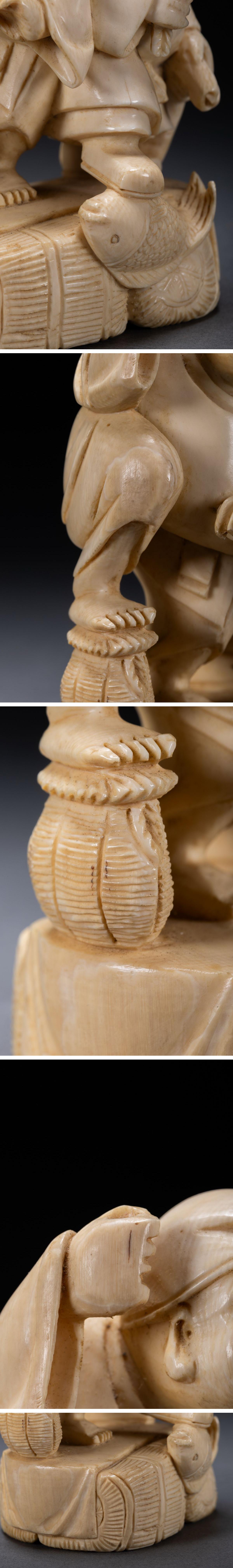 【雲錦】某有名オークション購入 時代物 特殊白材 大黒天・恵比寿造像 古置物 古擺件 古美術 時代コレクションZ-125