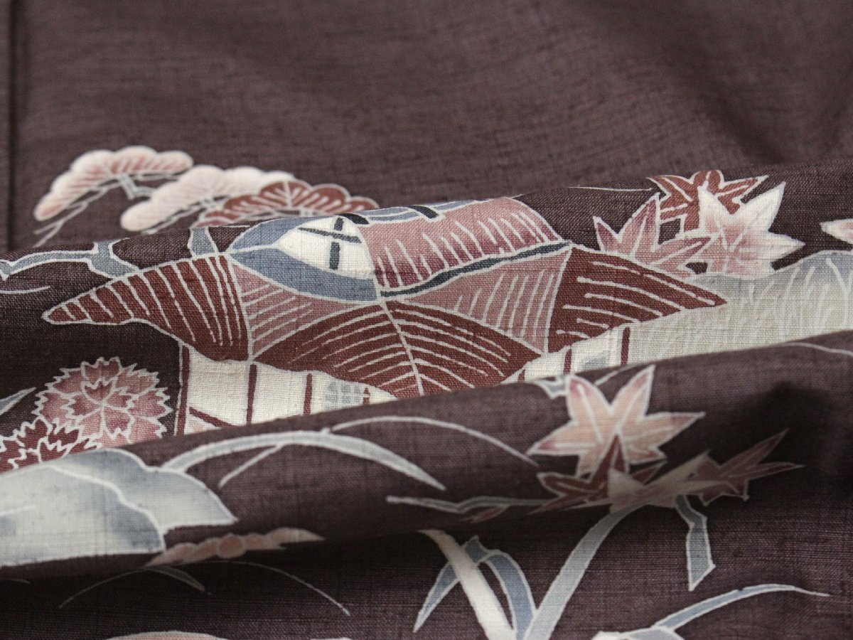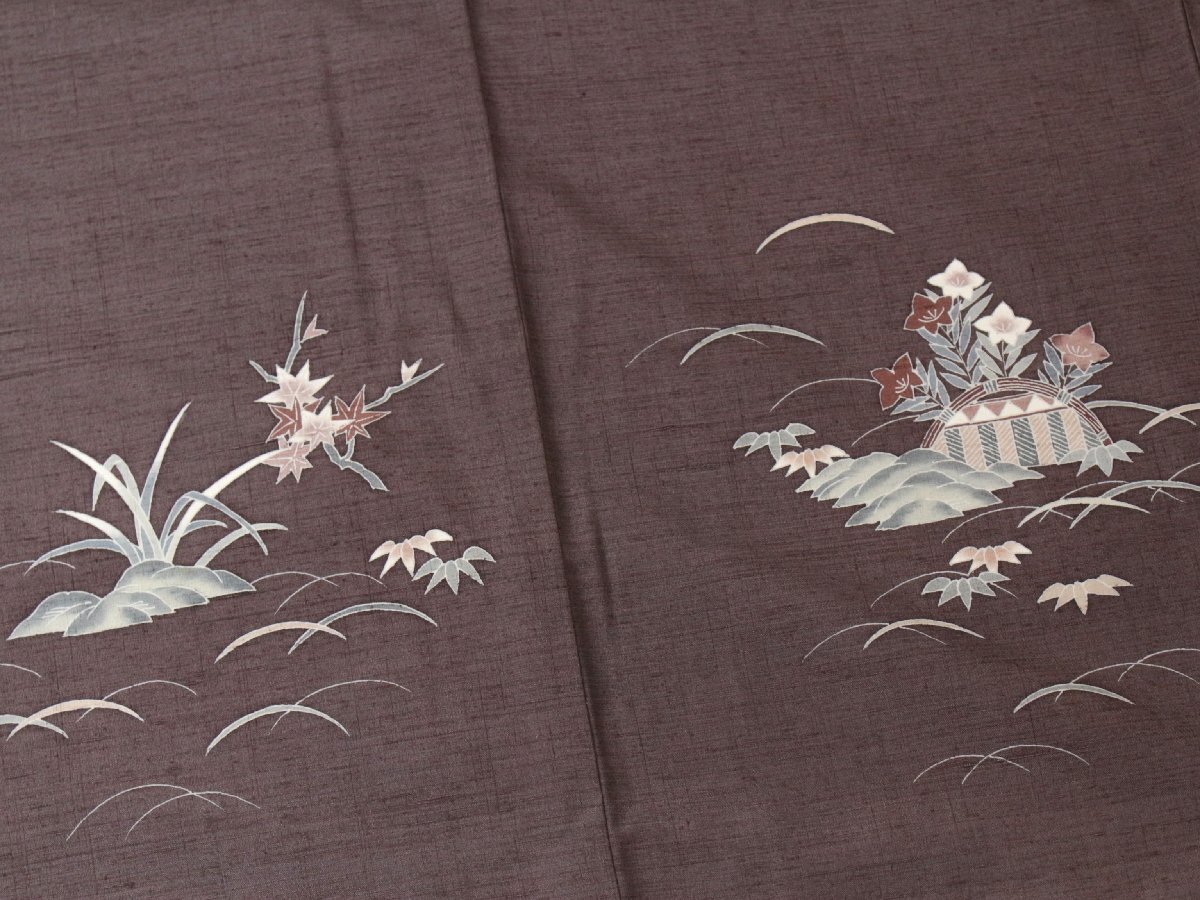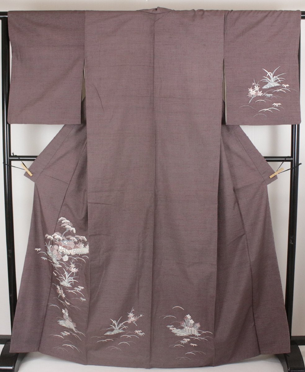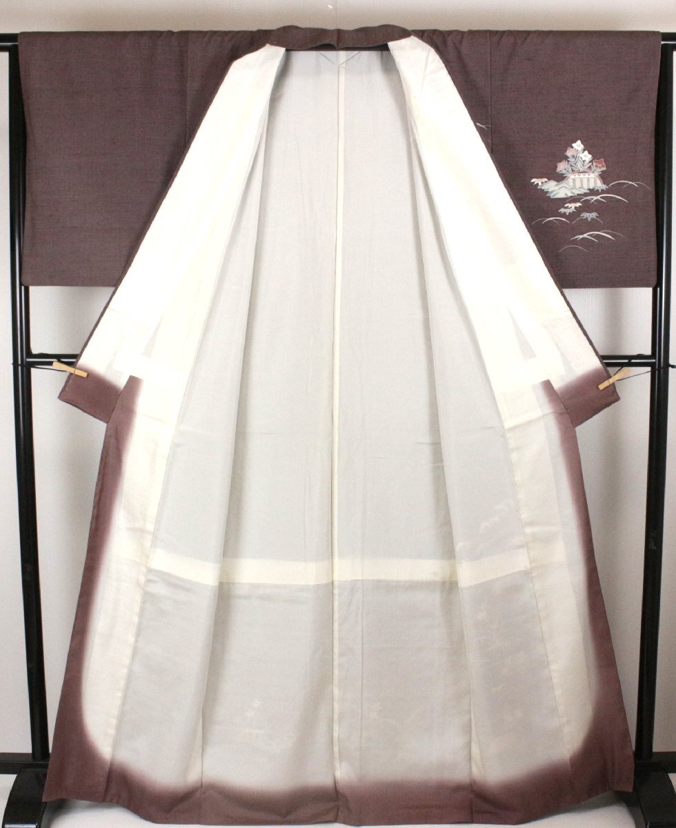 素敵な正絹紬附下のご紹介です。 落ち着きのある地色に、品格漂う家屋や松、草花が描かれた風雅な意匠が目を惹きます。 紬ならではの趣ある風合いが、素朴さと格調を兼ね備え、しっとりとした大人の装いを演出。 温もりを感じる絵柄は、古典的でありながらも柔らかな彩色により上品な雰囲気に仕上がっています。 観劇やお茶席、お出かけなど、幅広いシーンで重宝いただける一枚で、帯合わせ次第で華やかさも落ち着きも自在に表現できます。 伝統の美しさを纏いながら、日常の特別な瞬間を豊かに彩ってくれることでしょう。 お目に留まりましたら、是非ご検討下さいませ。 ※撮影時の部屋の照明によって画像の色に若干の差がございます。色味に差がございますことをご了承のうえご検討下さいませ。 …状態… 胴裏、八掛に若干の黄変あり。 ※全くの新品ではございませんので、記載のない変色やスレ、ヤケ、その他僅かな難がある場合がございます。そのような理由でのキャンセルはお受けできませんので、ご了承の上ご検討お願いいたします。 |