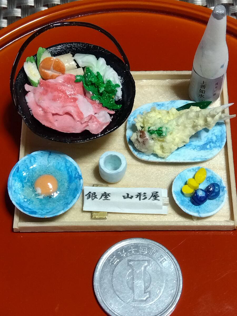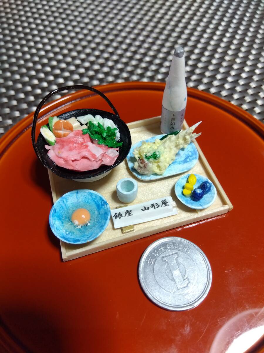 三種類の粘土 一部木材加工で作ったすき焼き 穴子天ぷらのセット