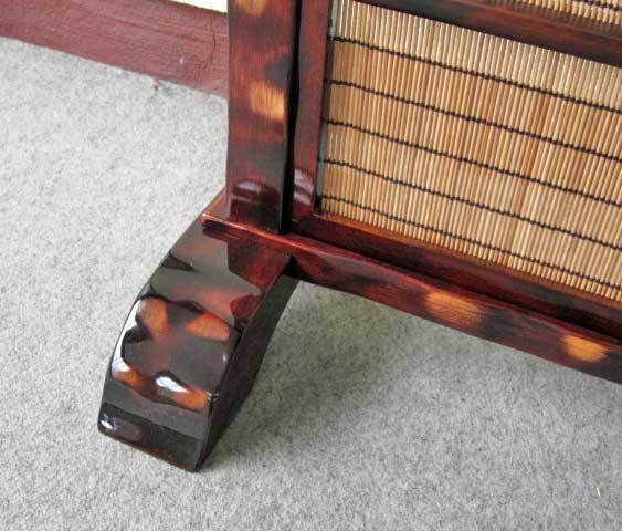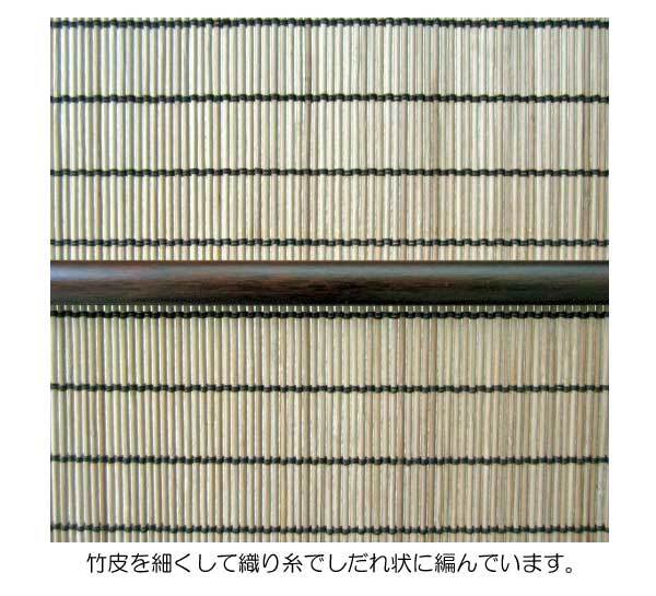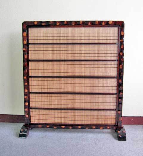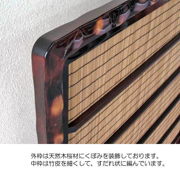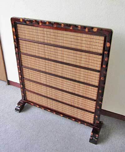 | 特徴 | ●昔ながらの伝統の一品。部屋の間仕切りや玄関先での目隠しとして最適です。 ●外枠は天然杢桜材を使用した本格的な衝立でブロンズ色に仕上げてあります。 ●中枠には、竹の皮を織り糸ですだれ状に編んでいます。 ●冬には「ふすま」と入れ替える事ができるので一年中使えます。 |