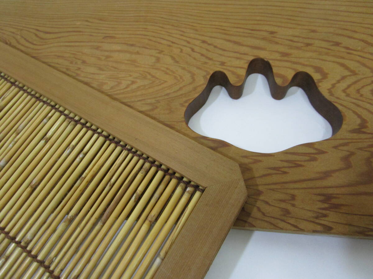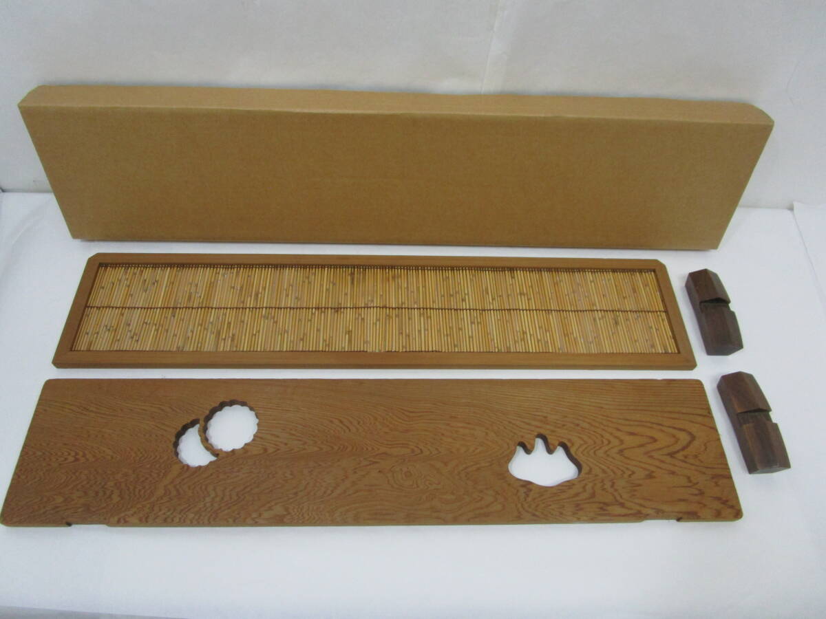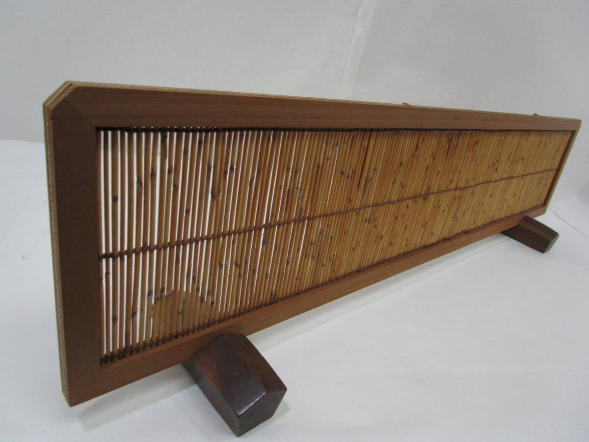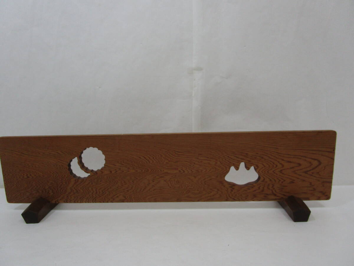 中古茶道具! 江戸間用 「天然杉の菊桐透し」 と 「葦入」 の結界  二枚一組です。サイズ:長さ85cm×受け台の巾12.5cm×高さ 18cm×厚み1.5cm ★目立つ傷無く丁寧に扱われています。 紙箱入。 どうぞ宜しく 。