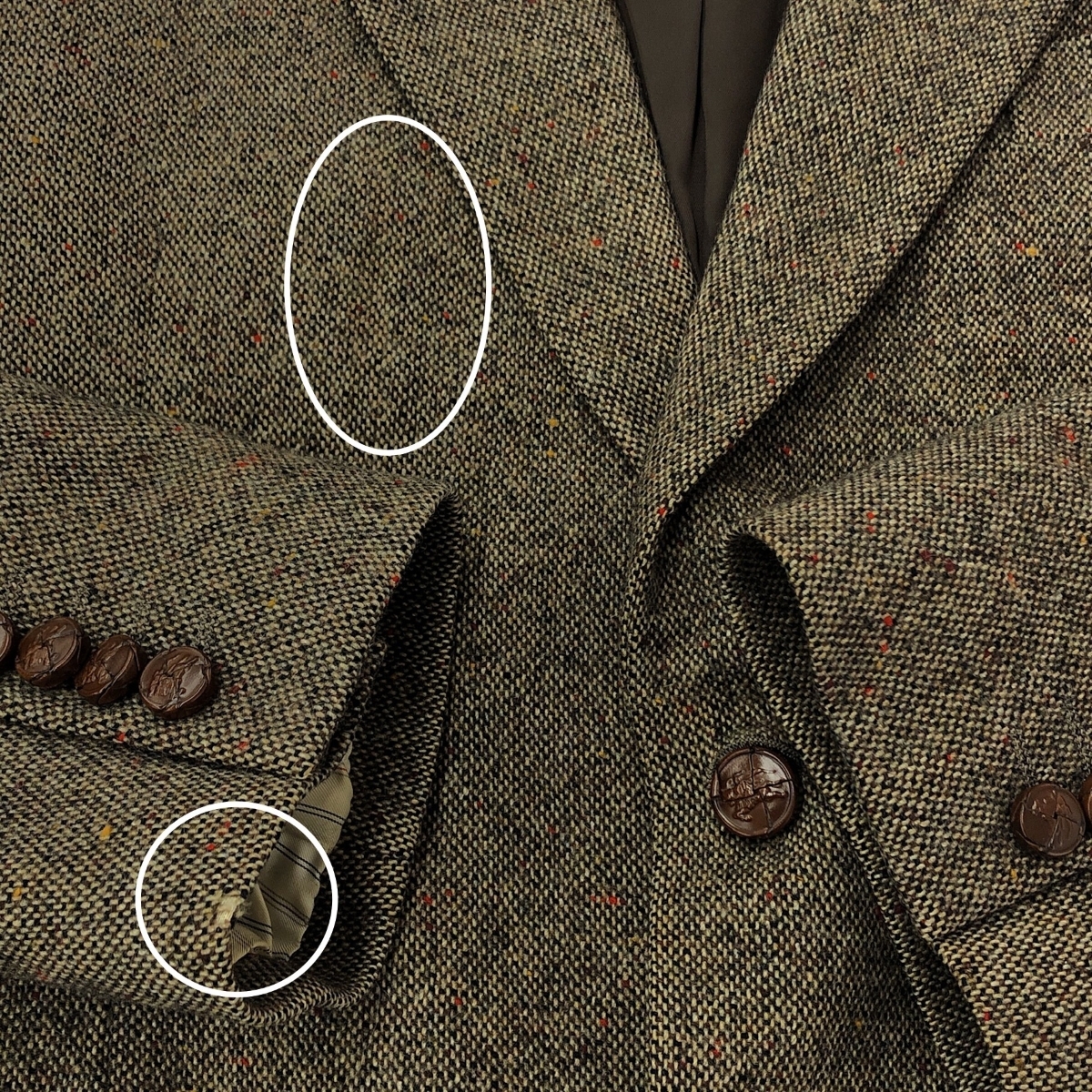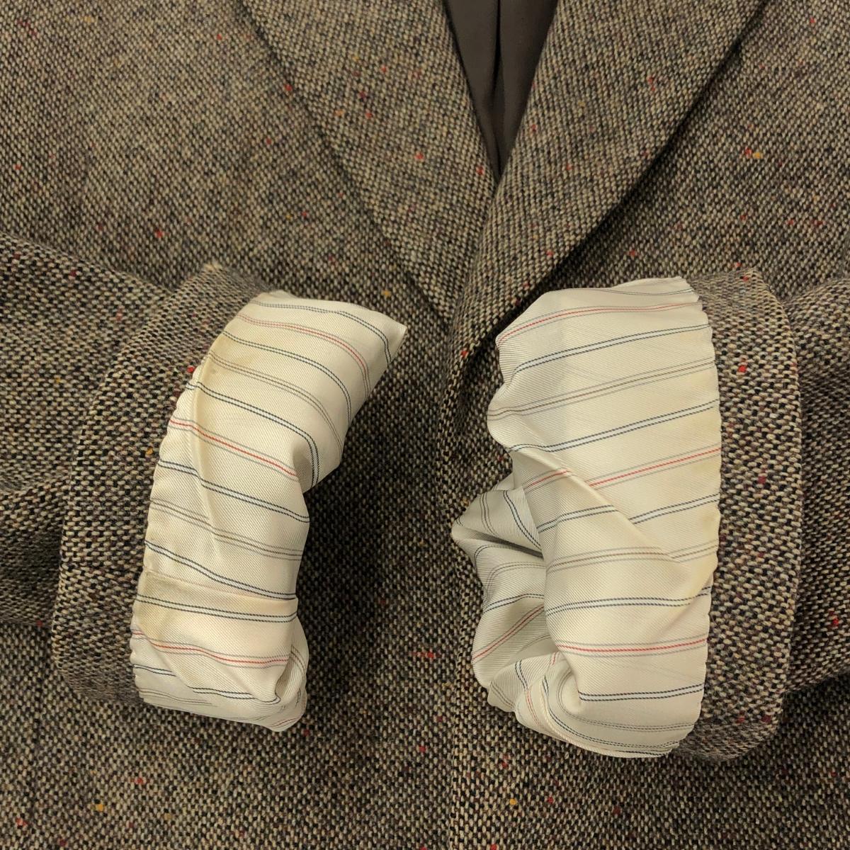袖口に破れあり 前身頃と袖口に汚れあり 裏地にネーム刺繍あり - ※スレ傷や汚れがある場合はその一部分のみ撮影を行っております。画像に写っていない箇所にも同じようなスレ傷や汚れがある場合がございます。 |