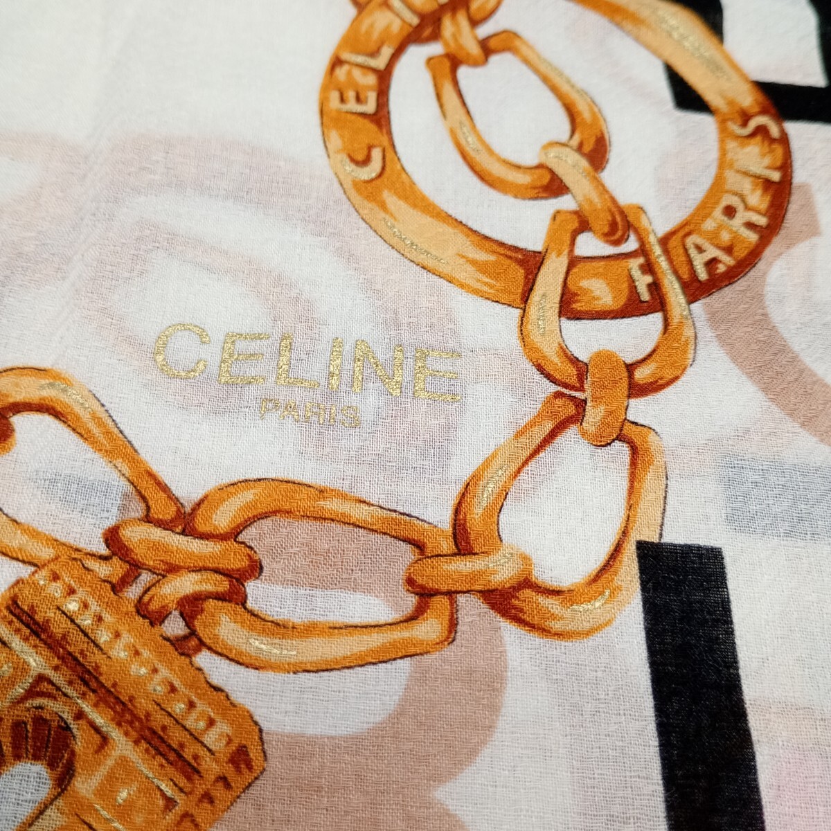 CELINE セリーヌ ハンカチ 大判 ロゴ柄 チェーン 凱旋門 ふちブラック no.3023