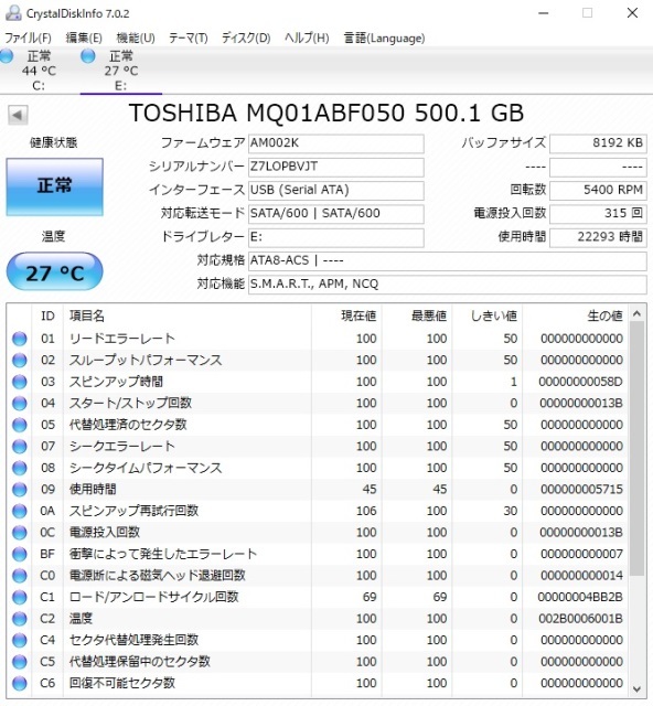 プロフィールもご覧ください m(__)m - 商品スペック - 86★動作良好・フォーマット済 ★東芝製 500GB HDD ★使用 22293 時間 ★5400rpm★厚み7mm ★2.5インチSATA ★送料無料 ■ スペックはタイトルの通りとなります HDD型番やコンデションは Crystal Disk Info画像をご覧下さい ■ データ消去後、GPT (UEFI) 形式で フォーマット済みなのですぐ使えます ■ サポートはできませんので腕自慢の方 ノートパソコンやデスクトップパソコン用に Windowsをインストールしたり 外付けHDD用や 流行りのNAS用HDDにいかがでしょうか ■ 同梱発送も承ります ■ 迅速な発送を心掛けておりますので どうぞ宜しくお願い致します |