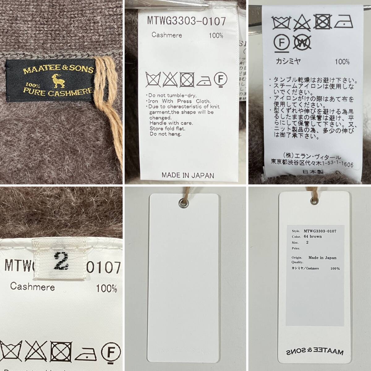 美品 MAATEE&SONS WAGAMAMA別注 カシミヤ シャギー カーディガン ブラウン タグ付き