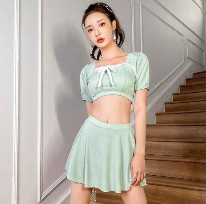 レディース 体型カバー 水着 2点セット スカート水着 フリル ビキニ スイムウェア XL ネイビー