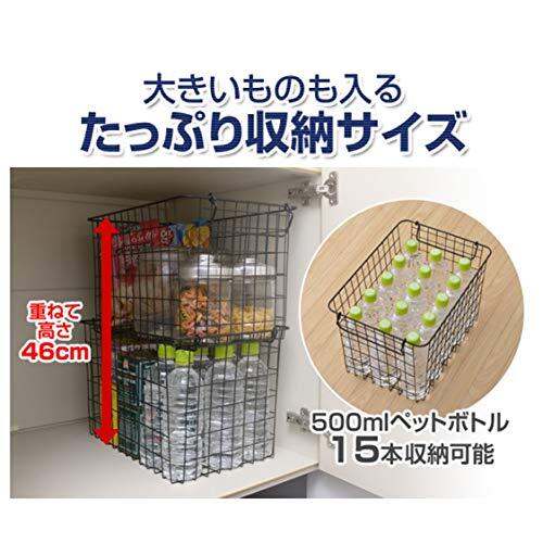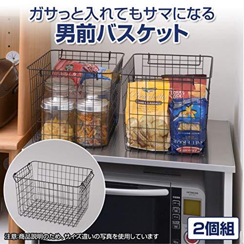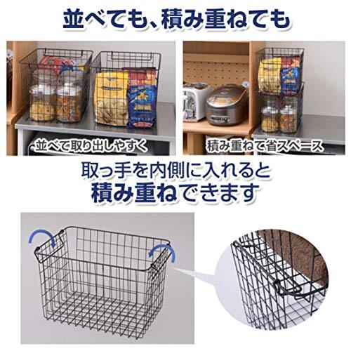 山善 ワイヤー バスケット 幅37×奥行26×高さ12cm 浅型タイプ 積み重ねOK ブラック 2個組 RWB-321(BK)*2