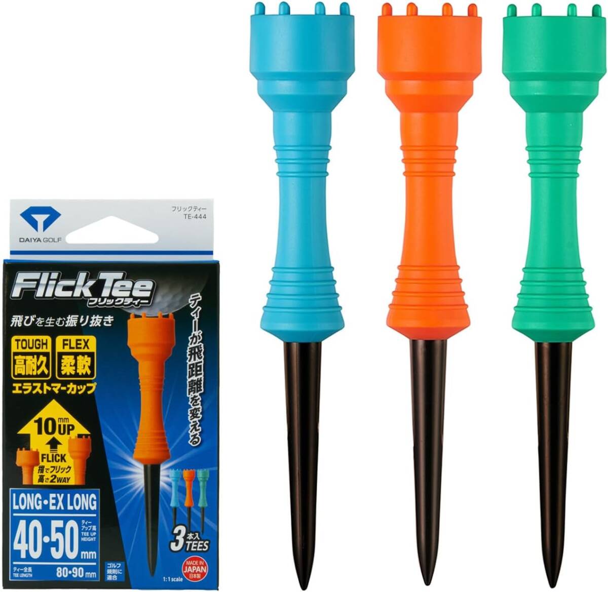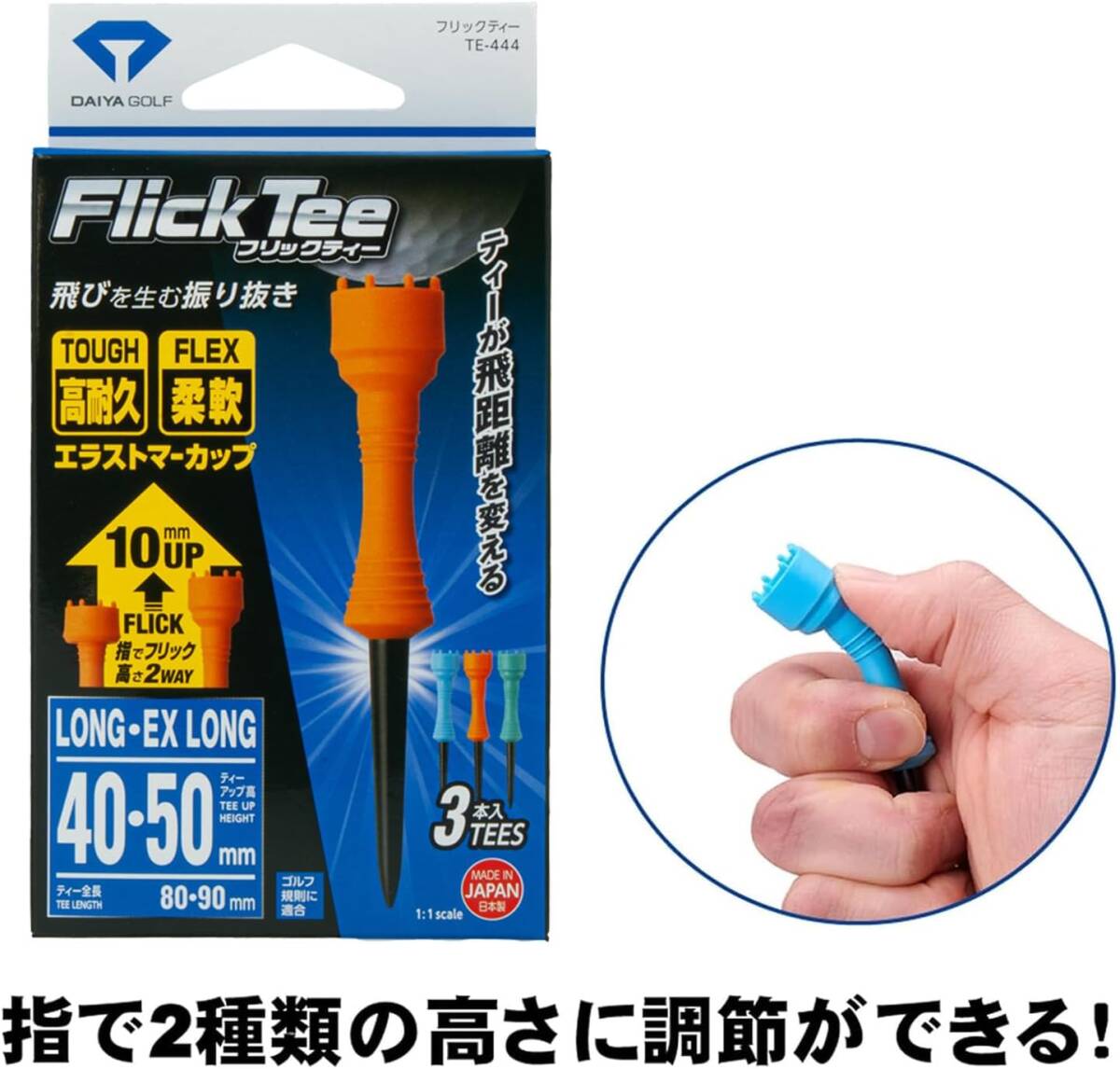 ダイヤゴルフ(DAIYA GOLF) ゴルフティー フリックティー 2段階高さ調節 ティーアップ高40・50mm 高耐久で柔軟性の高いエラストマーカップ 初心者 ゴルフ規則適合 日本製 3本入 TE-444