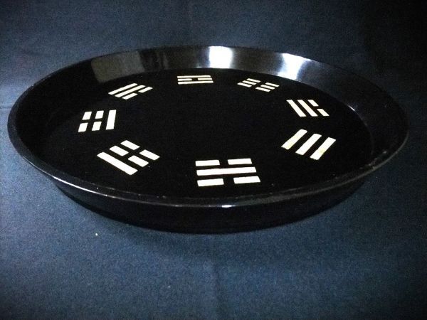【睦】八卦盆 裏千家 青貝 八卦象嵌 39㎝ 茶道具 本漆器 天然木 時代物 骨董 共箱■