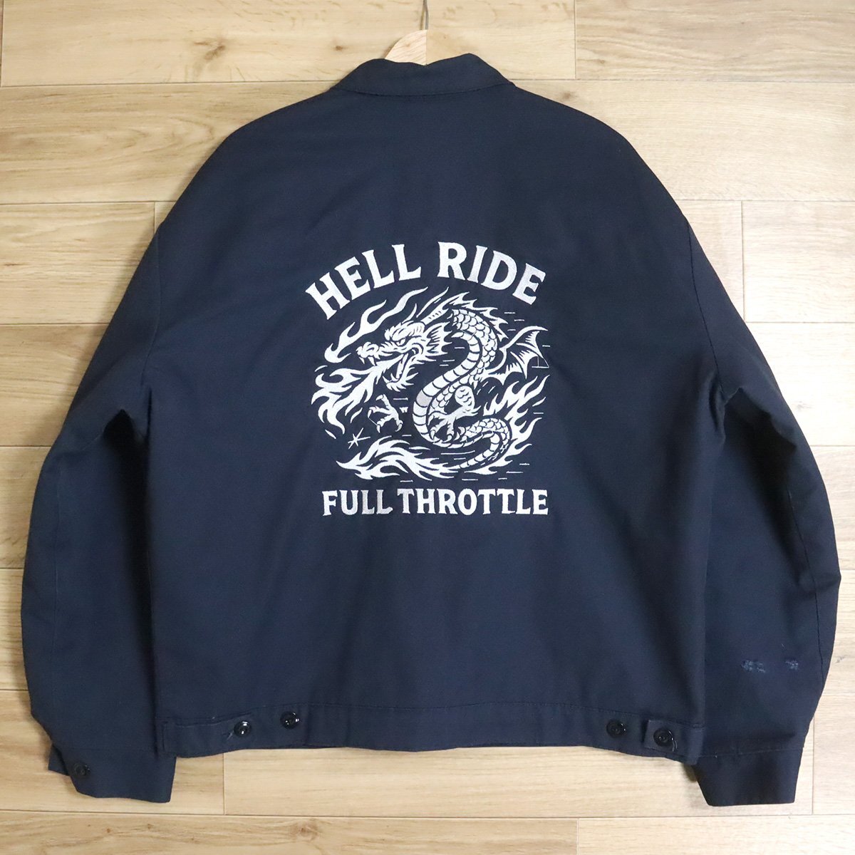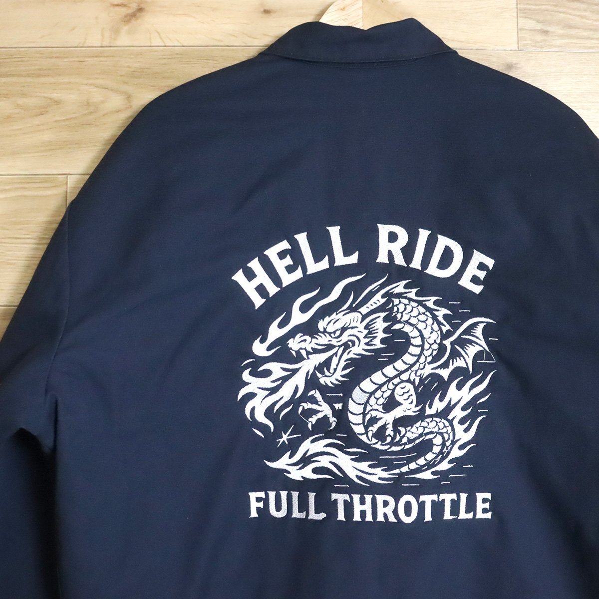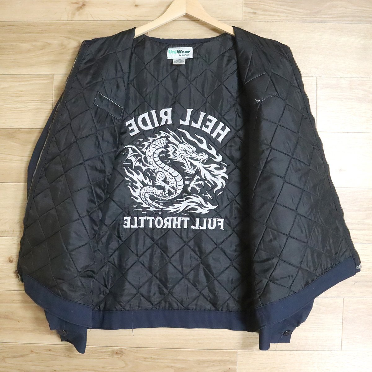H4T/D10.13-2 アメリカ古着 UniWear ワークジャケット L メンズ バック刺繍 竜 HELL RIDE ジャンパー ブルゾン バイカー