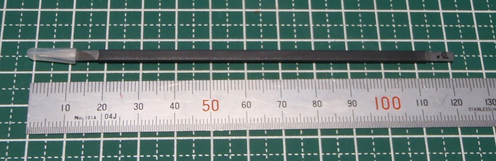 全体の長さは研磨前で約12センチ、幅1ミリ少々、厚さ3ミリ少々になります