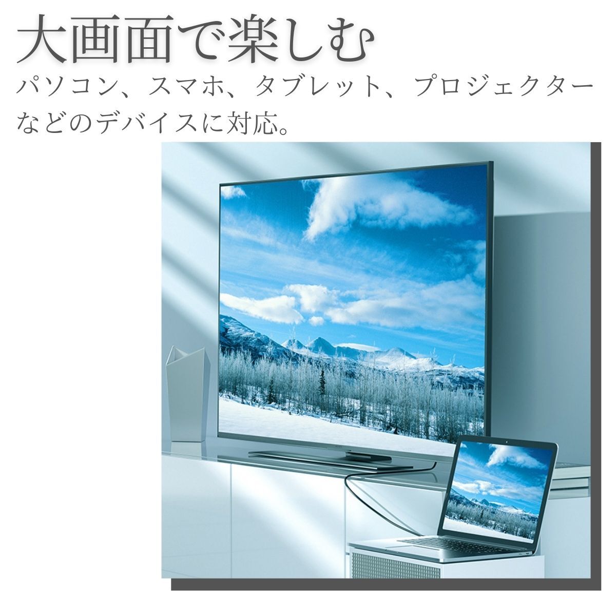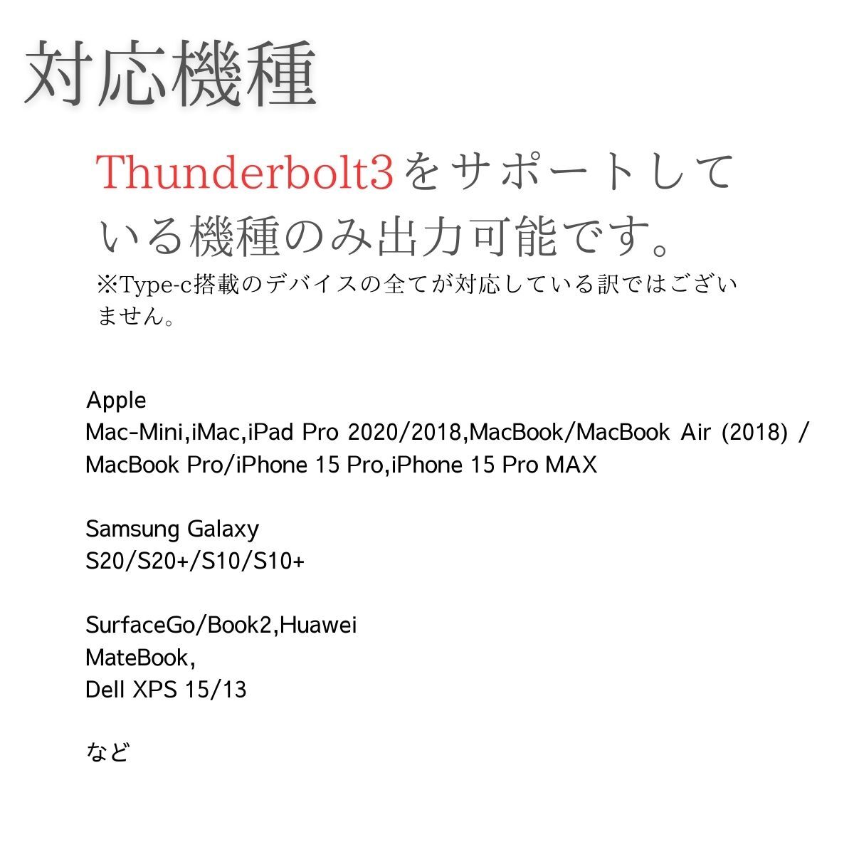 | 商品説明 | ※Thunderbolt3をサポートしているデバイスに対応しております。 対象外機種での返品等はお受けできません。 今一度ご確認くださいませ。 ■大画面で楽しもう パソコン、スマホ、タブレット、プロジェクター などのデバイスに対応。 ■4K高解像度に対応 最大解像度4K 3840×2160 に対応。 鮮明な映像を大画面でご堪能いただけます。 ■1.8mと十分な長さ 1.8mあり、リビング、会議室など 広いお部屋でも十分に配線できる 長さになっております。 ■簡単接続 アプリやドライバのインストールは一切不要、 接続するだけでお使いいただけます。 ■拡張・複製どちらも対応 ■対応デバイス Thunderbolt3をサポートしている、 Apple製品などに対応しています。 ※Type-c搭載のデバイスの全てが対応している訳ではございません。 Apple Mac-Mini,iMac,iPad Pro 2020/2018,MacBook/MacBook Air (2018) / MacBook Pro/iPhone 15 Pro,iPhone 15 Pro MAX Samsung Galaxy S20/S20+/S10/S10+ SurfaceGo/Book2,Huawei MateBook,Chromebook, Dell XPS 15/13 など |