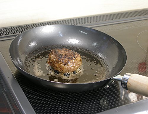 特殊(窒化)熱処理した鉄の表面は、極めてサビにくく、大変丈夫でキズにも強く、面倒だったお手入れが簡単 油なじみが良いため、焦げ付きにくく調理がしやすい 熱を蓄える力が大きく、たっぷりの熱(豊富な熱量)を食材に素早く通すので、炒め物がシャキッと、焼き物は香ばしく仕上がる 使うたびに自然に鉄分が摂取できるのも鉄の嬉しい特徴 最もベーシックなデザインのフライパン