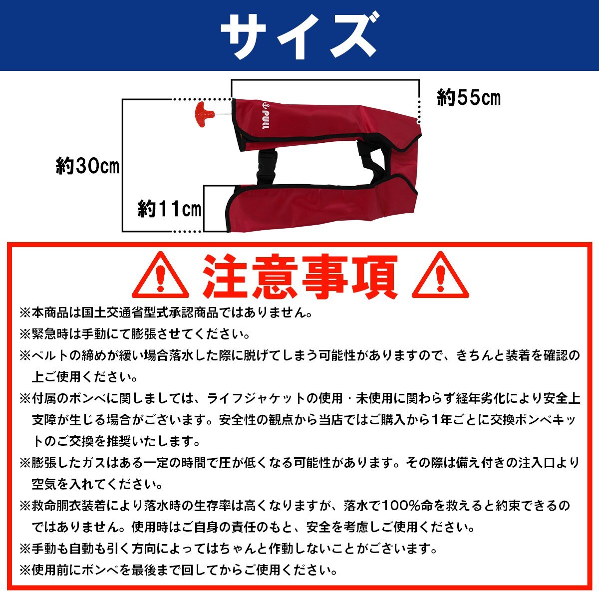 ●自動膨張式ですが、稀にうまく膨らまない可能性もございます。その場合には紐を引いて膨らませてください。