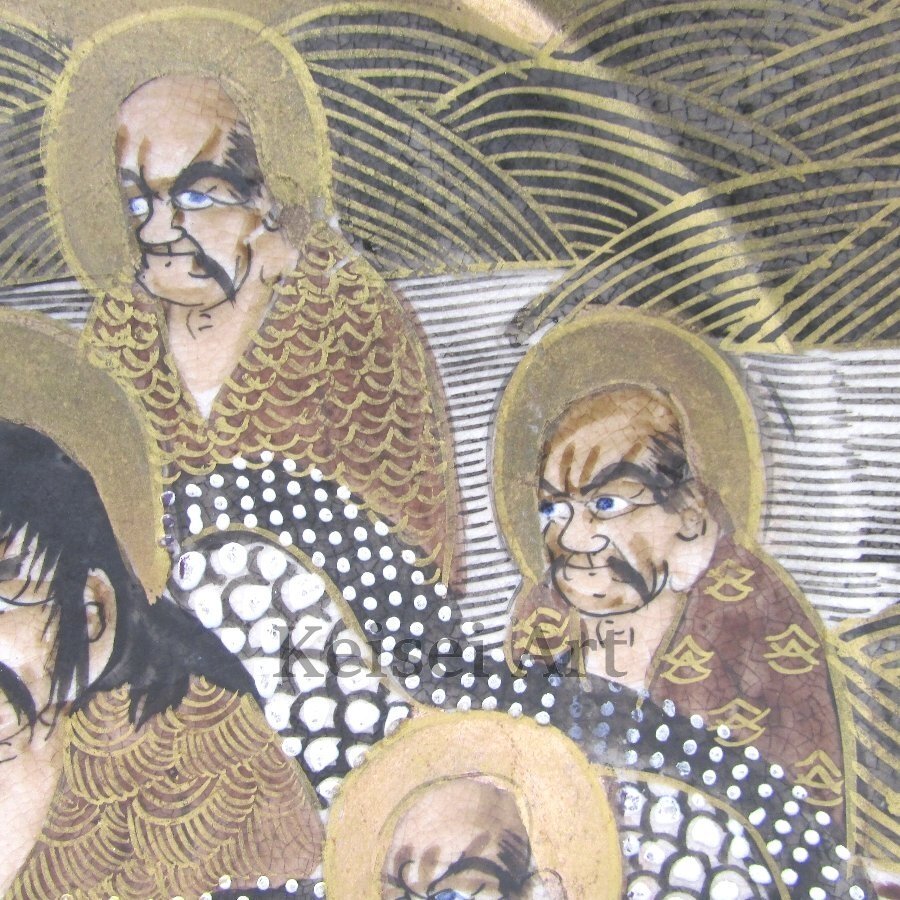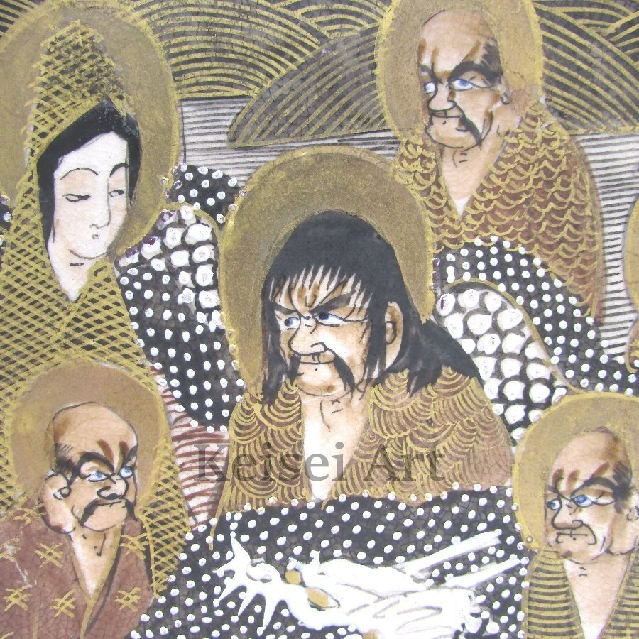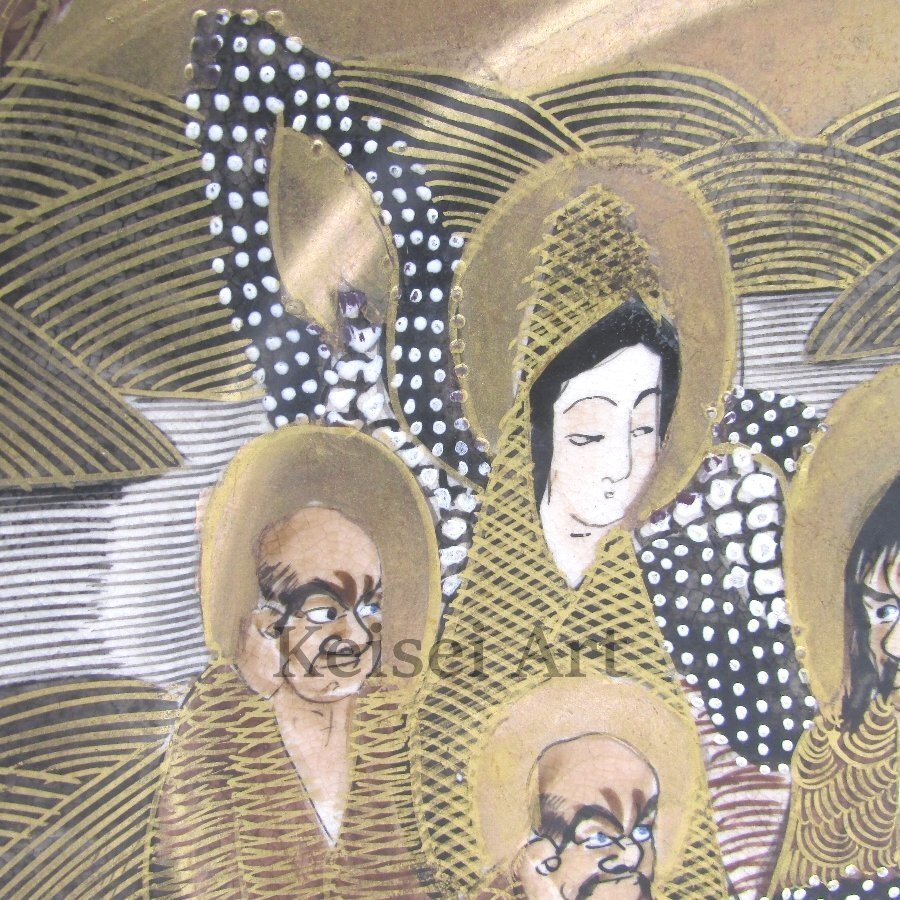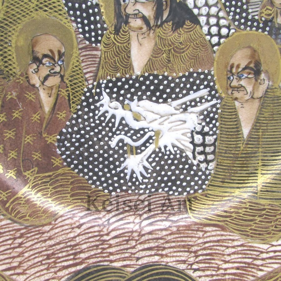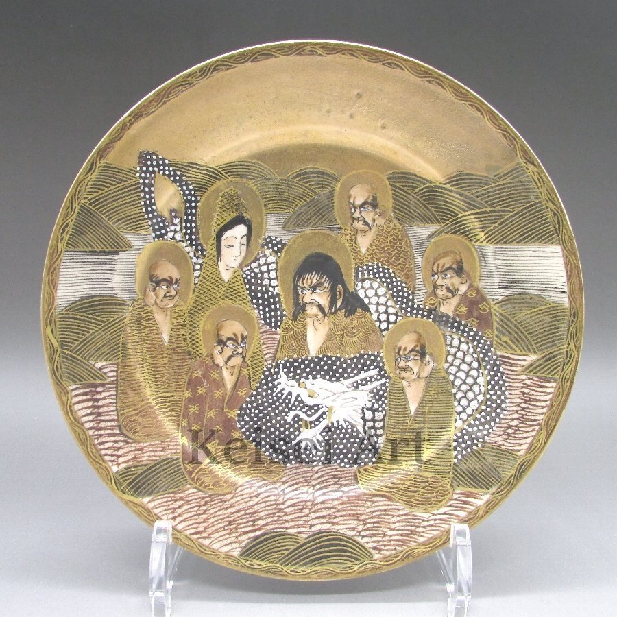 薩摩焼 金襴手龍盛上人物文皿 保土田 スペインより里帰り