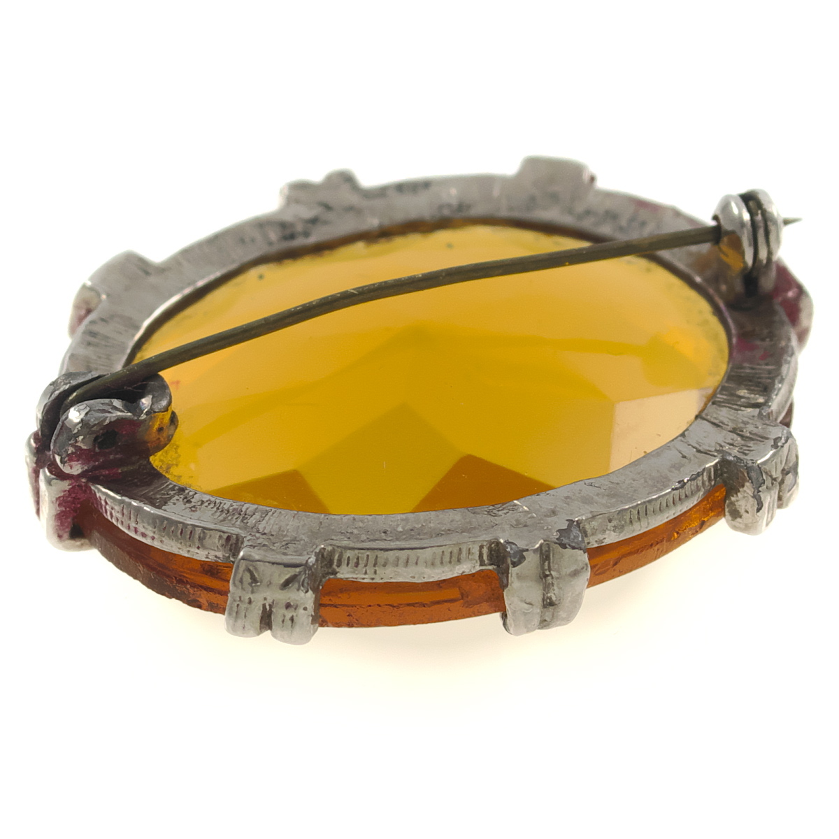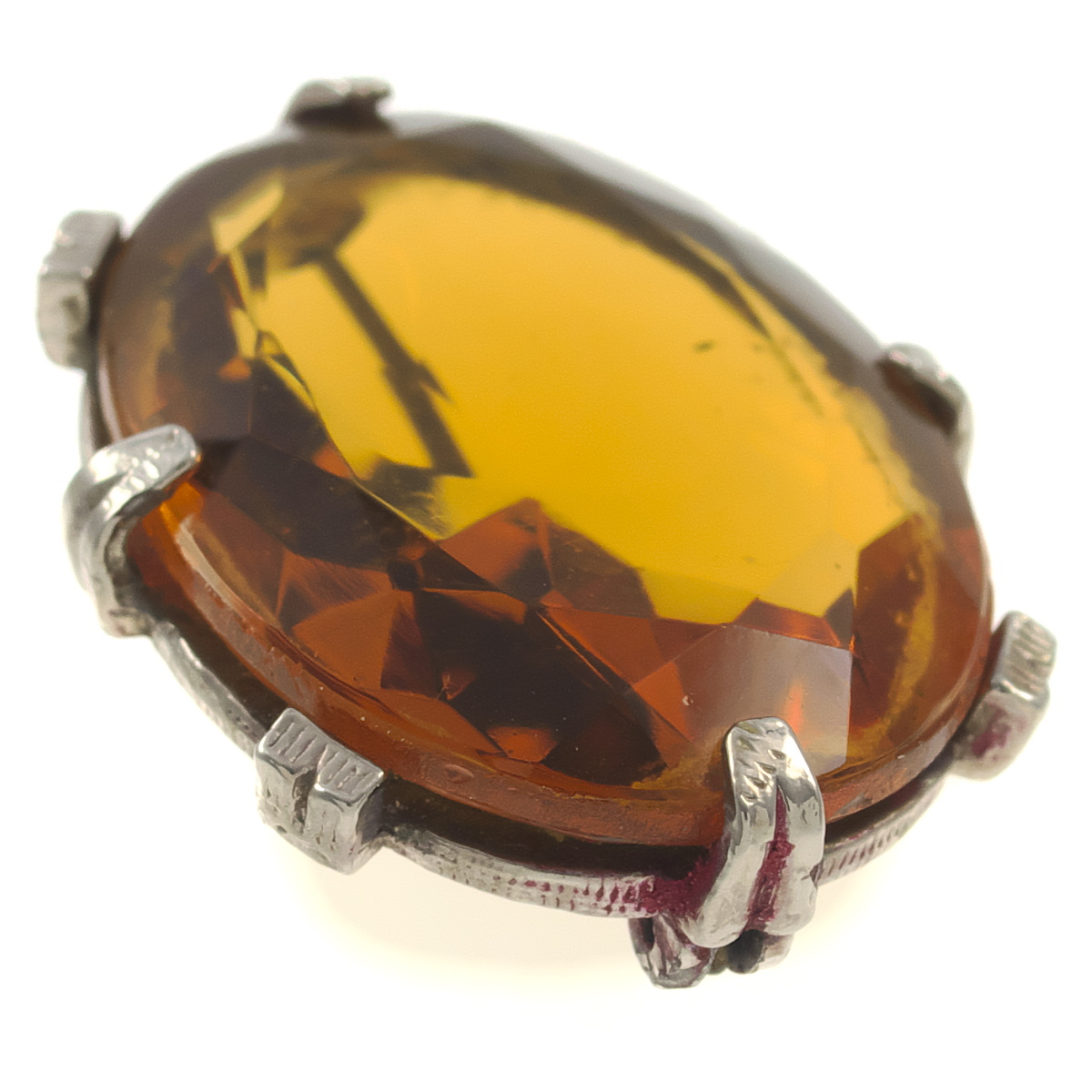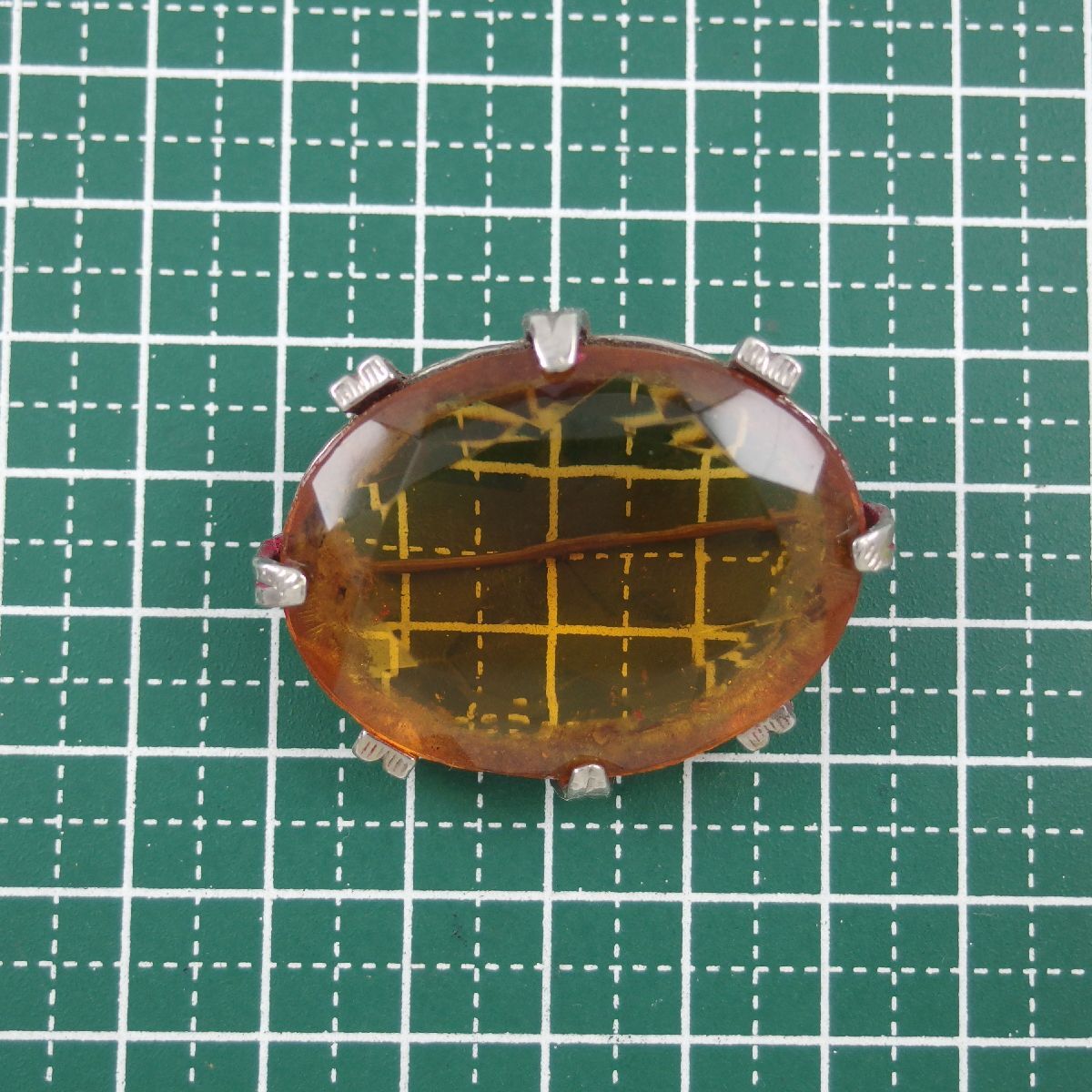 UK4255◆ 大粒 アンバー系ガラスストーン オーバルシェイプ 色石 英国 イギリス ◆ ヴィンテージブローチ ◆