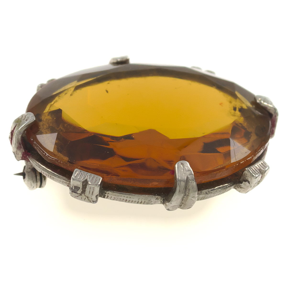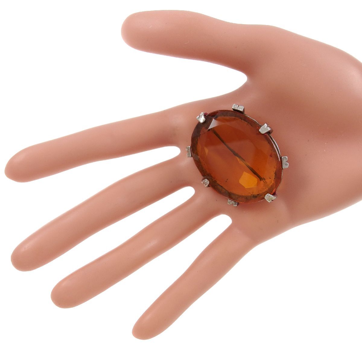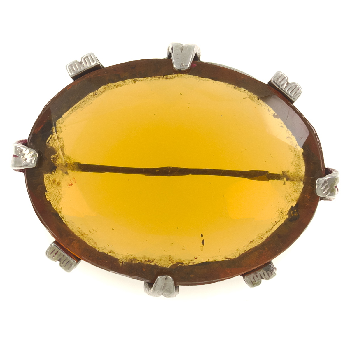 UK4255◆ 大粒 アンバー系ガラスストーン オーバルシェイプ 色石 英国 イギリス ◆ ヴィンテージブローチ ◆