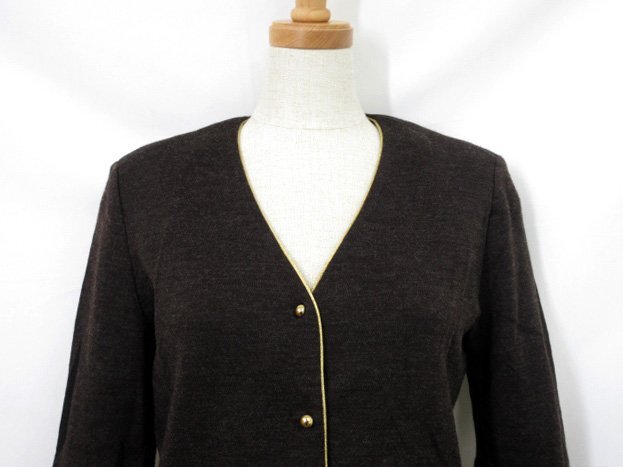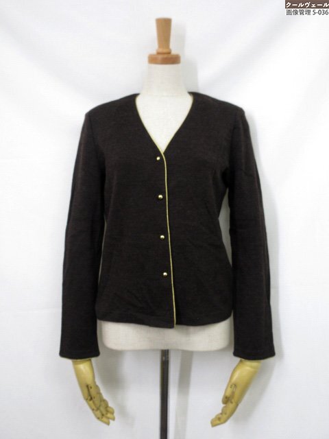 超美品【Harrods ハロッズ】10252209 ゴールドパイピング 金ボタン ハイゲージニットカーディガン (レディース) ブラウン系 ◇17LN6129◇