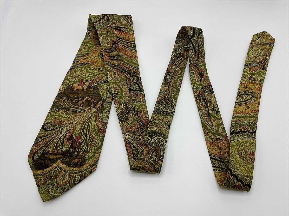 【美品】Ralph Lauren ラルフローレン 乗馬柄 ネクタイ 3本以上 送料無料 メンズ グリーンブラウン 0904135