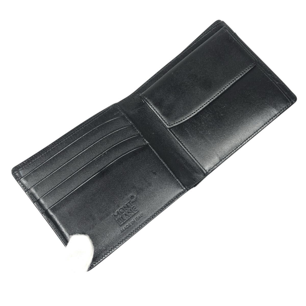 【モンブラン】本物 MONT BLANC 2つ折り財布 マイスターシュティック ホワイトスター 二つ折り 小銭入れ有 コンパクトウォレット メンズ