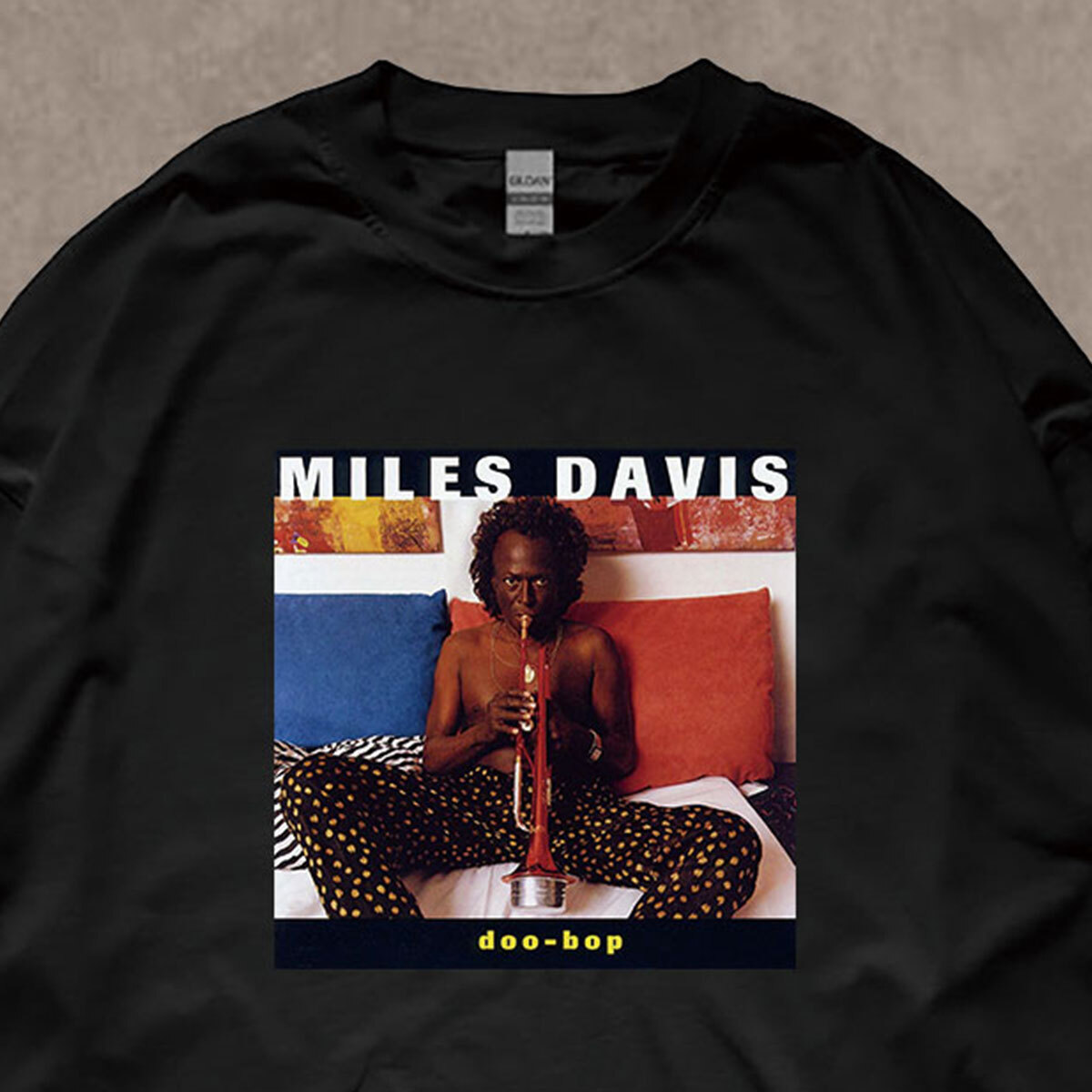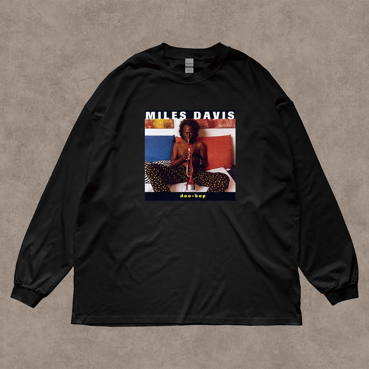 マイルス デイビス Miles Davis Doo-Bop ドゥー バップ フォトプリント リブ付き 長袖 Tシャツ ロンT JAZZ 6oz 綿100% クロ L
