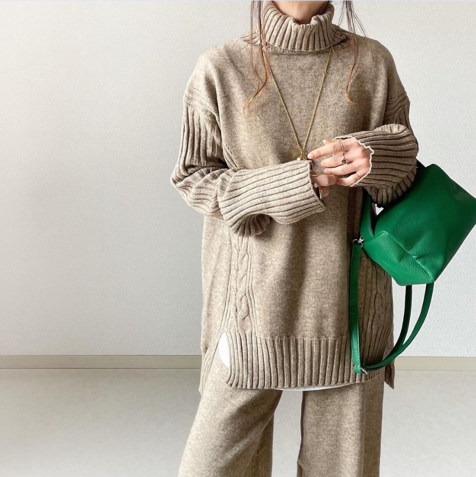 新入荷ニット セーター+パンツ セットアップ おしゃれ カジュアル フリー オートミール色お色選択可