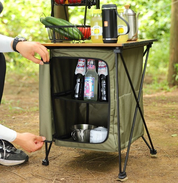 【この屋外キャンプテーブルには、複数の人の持ち物を収容できる広い内部スペースがあり、キャンプサイトを整頓して乱雑に保つのが簡単です。 アイテムを並べ替えることもできます。