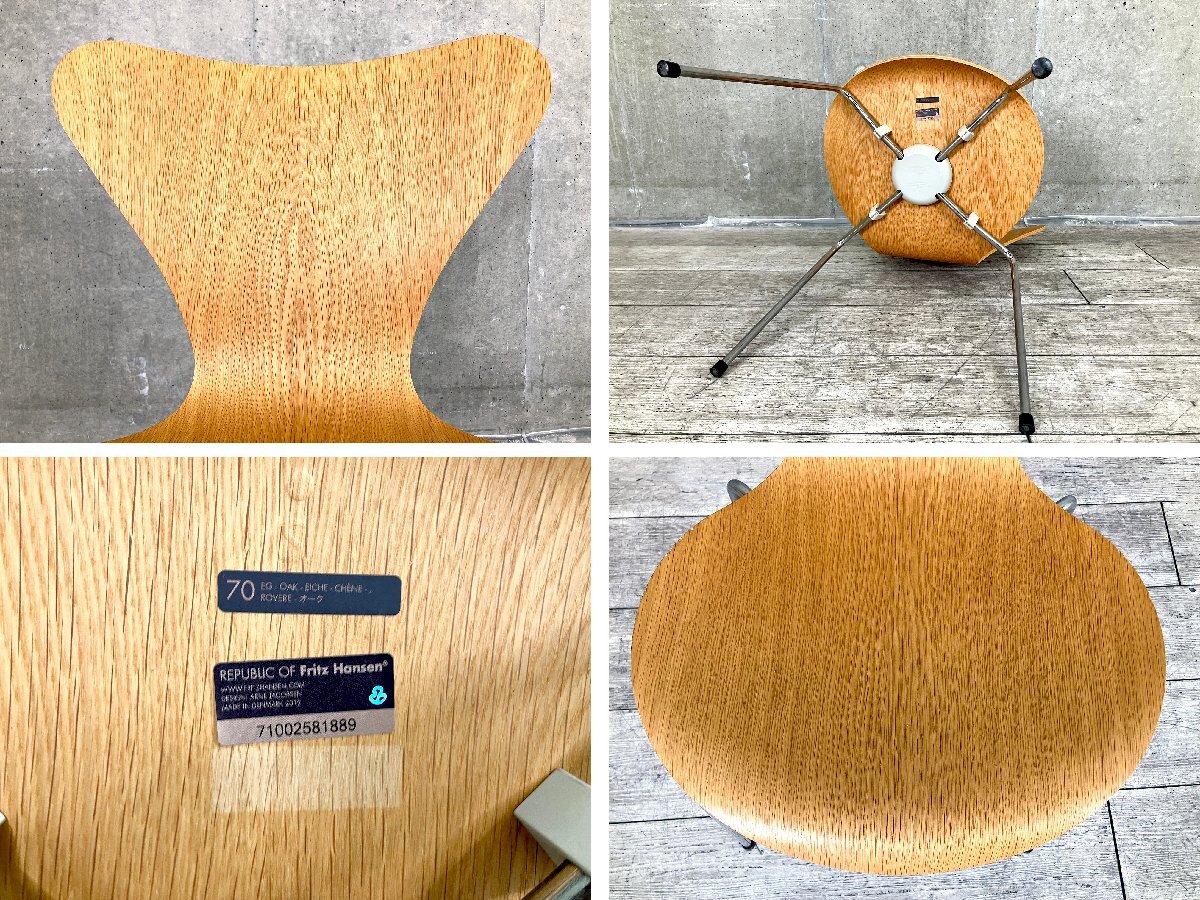 | ■北欧家具の代名詞『フリッツハンセン社』の『セブンチェア』です。 洗練されたたデザインはオフィスユースやホームユースと空間に左右されず馴染んでくれます。 中古市場でも人気のお品物ですので、お早めにご検討下さい。 新品定価:¥94,380(税込み) ■材/オーク ■サイズ/W500 x D520 x H790 SH430 ■状態/全体的に使用に伴う細かいすれ傷が御座います。 機能を損なうダメージはなく、日常使用には問題ございません。 |