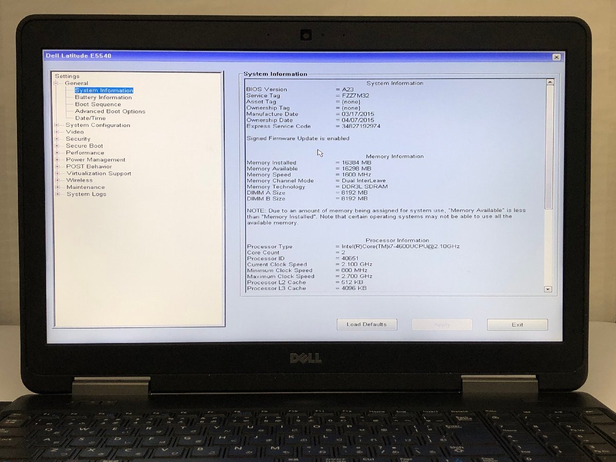 ジャンク/ Dell Latitude E5540 Intel Core i7-4600U メモリ16.38GB HDD1TB 【K23345】