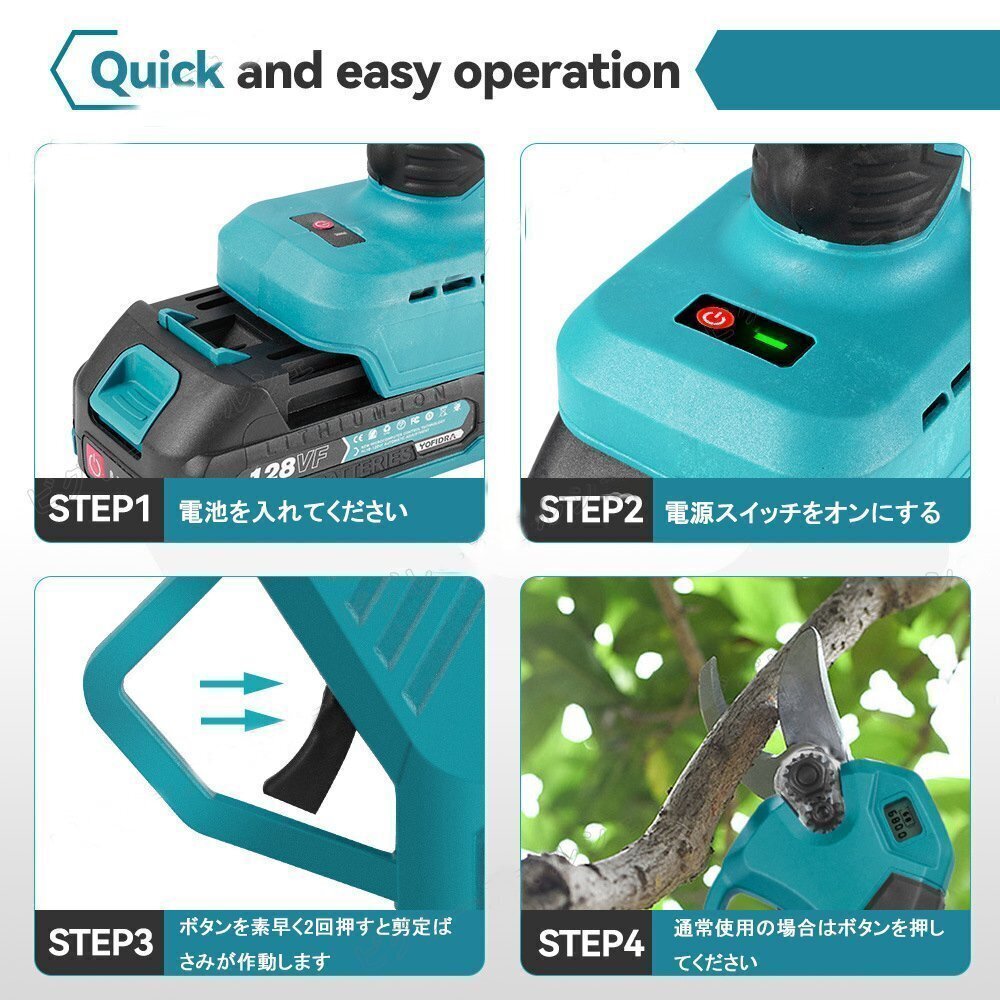 剪定ばさみ 充電式 剪定ばさみ 電動ハサミ ブラシレスモーター採用 開き口30mm 4段階開き角度調整可能 枝切りはさみ 果樹用 剪定鋏