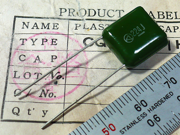 ■岡谷電機 フィルムコンデンサ 50V 0.22μF(CQ-92MC1H)