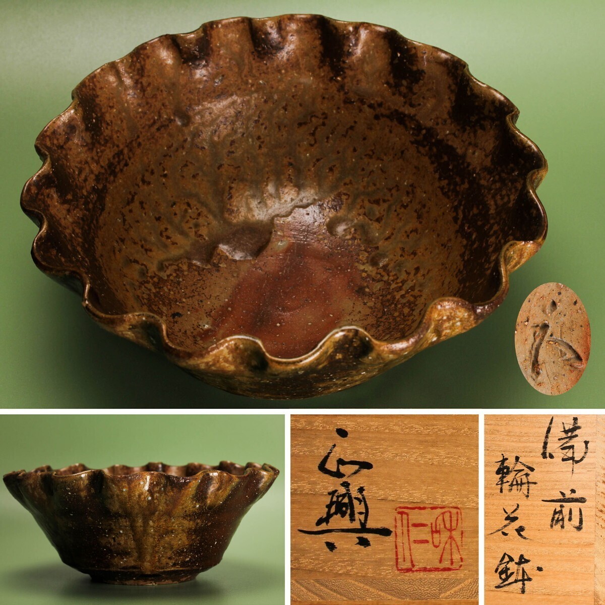 和仁正興(和仁栄幸) 備前輪花鉢 共箱 本物保証 (師:人間国宝 金重陶陽一門最後の弟子)