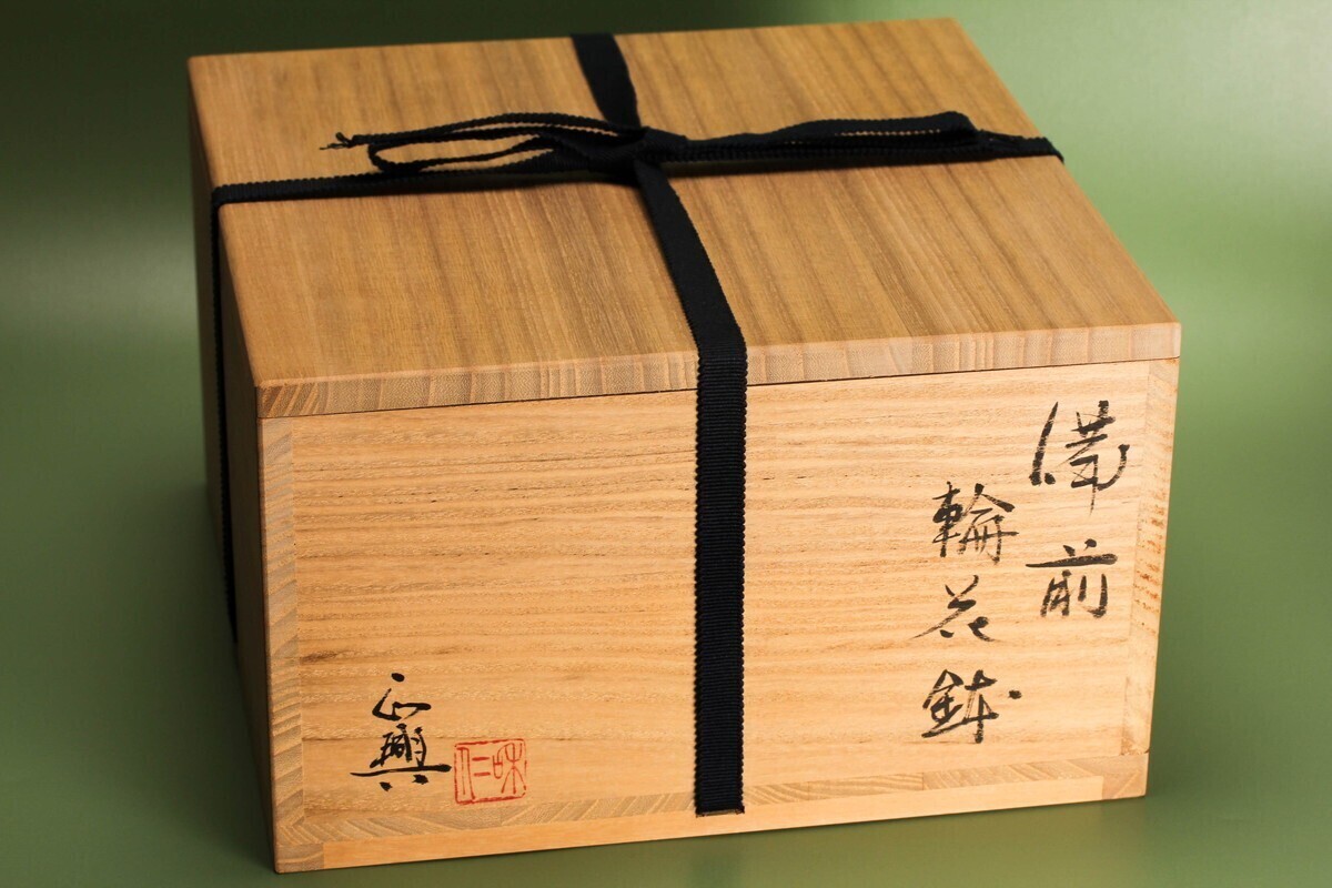 稀に他の作品名・作家名が書き付けられた木箱をお付けしております。誤認防止のため箱書き部分の画像を掲載しない場合もございます。