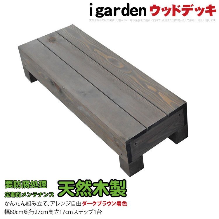 igarden 天然 木製 ウッドデッキ ステップ 踏み台 ダークブラウン 縁側 階段 段差 DIY 庭 簡単 組み立て -1sdb