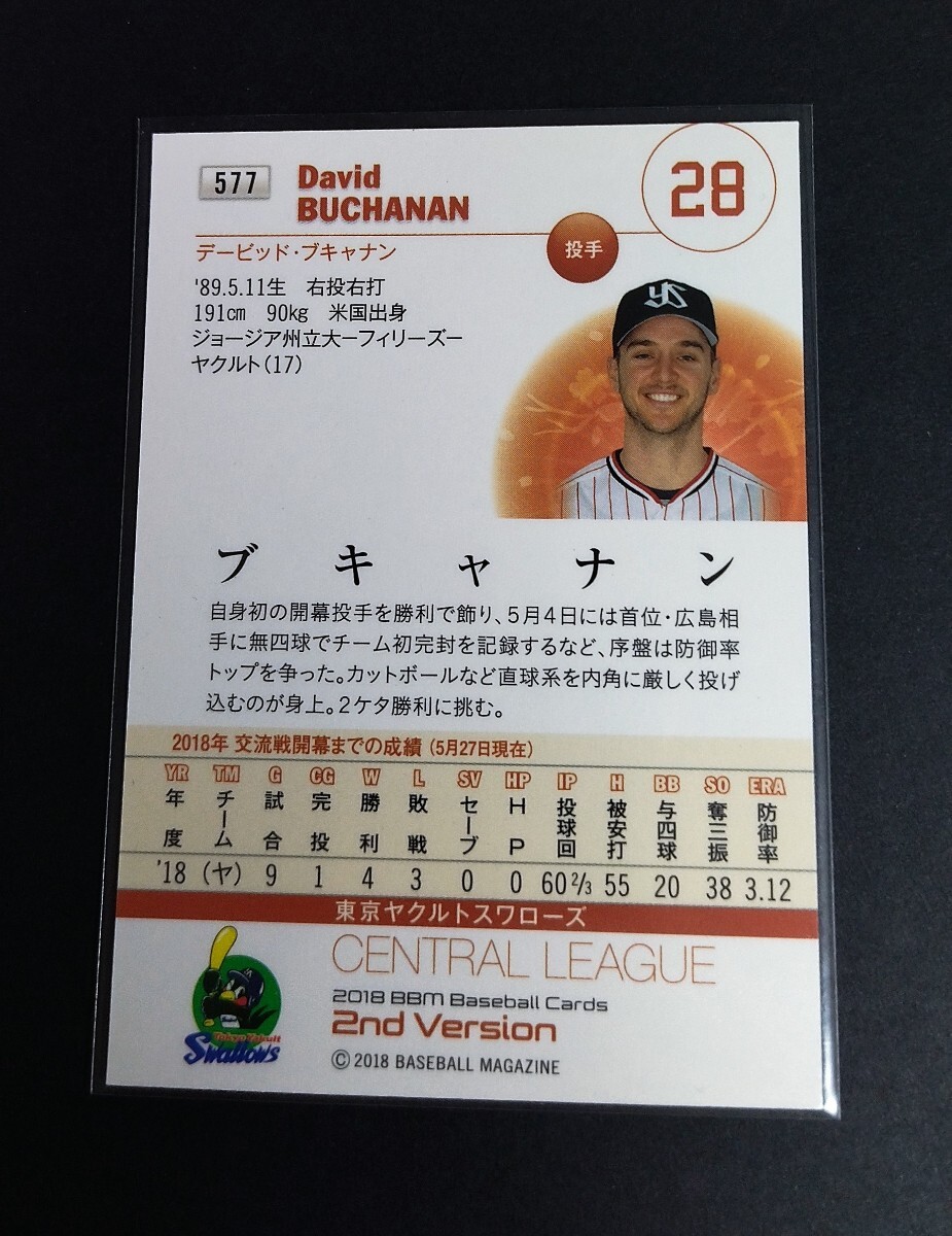 2018年BBM 2nd ブキャナン(ヤクルト)銀箔サイン入り。No,577。