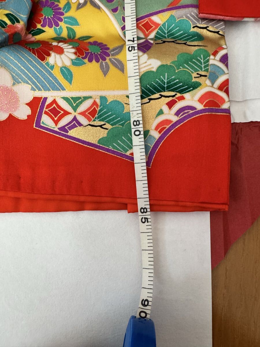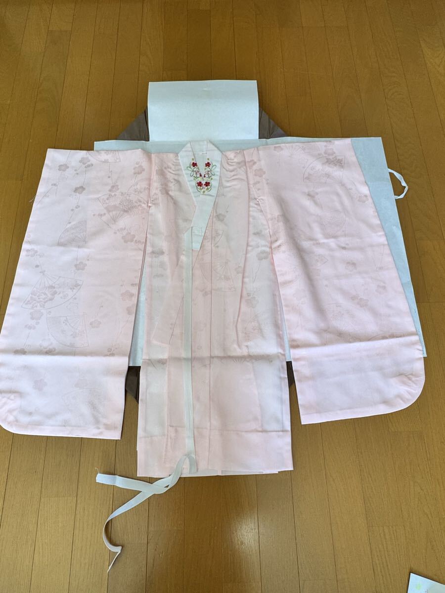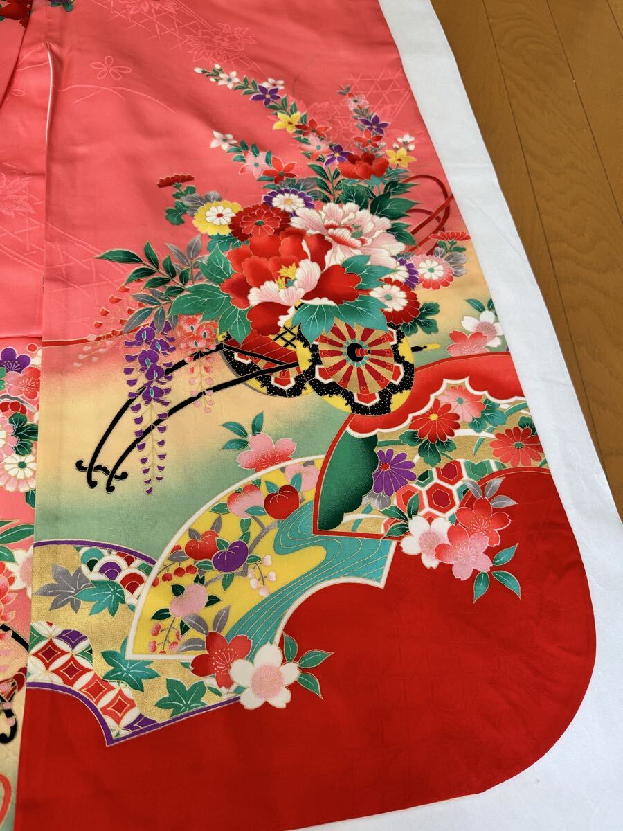 七五三用 7歳用の四つ身 ピンク色 正絹 長襦袢付き 肩上げ、腰上げの補正をしていますので、サイズが合えばすぐにご使用いただけます。