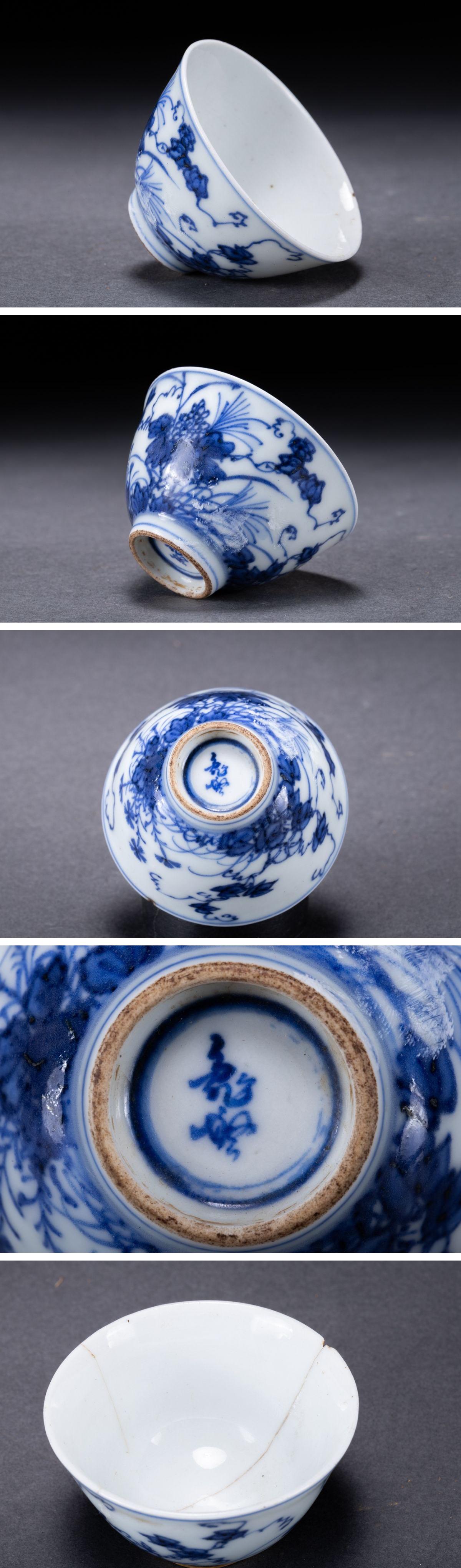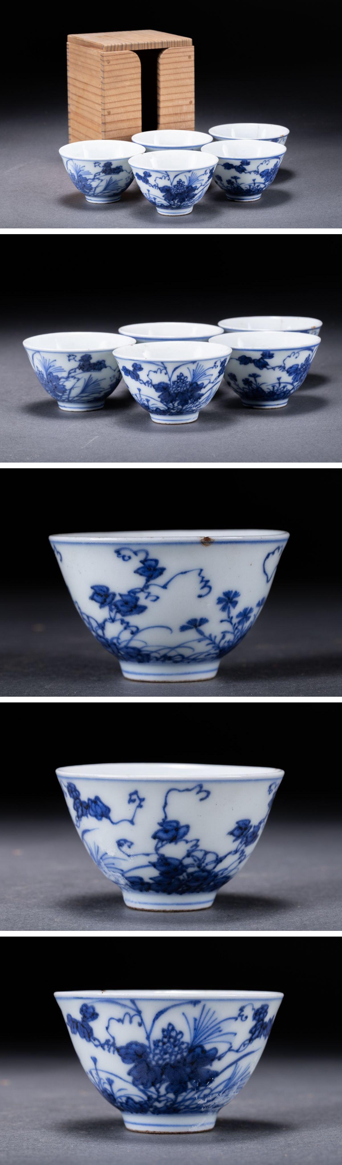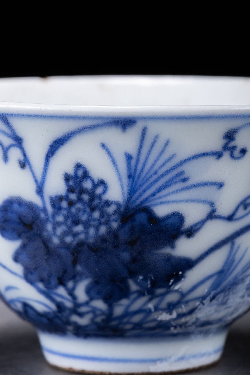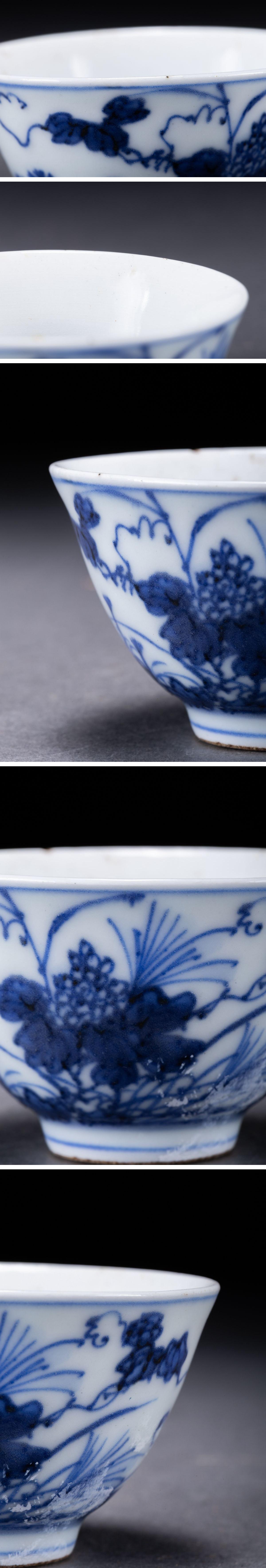 【華】某有名収集家買取品 時代物 古京焼 染付き はお花花卉紋茶碗 茶煎道具 傷あり 古美術 骨董品A25070149-IR